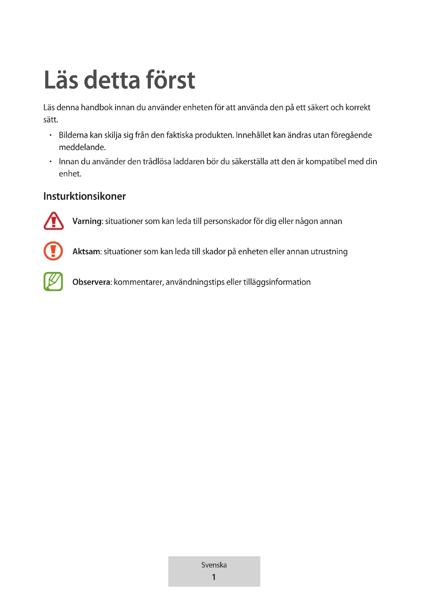 Alle overige handelsmerken en auteursrechten zijn eigendom van de respectieve eigenaars.1 Svenska Läs detta först Läs denna handbok innan du använder enheten för att använda den på ett säkert och korrekt sätt.