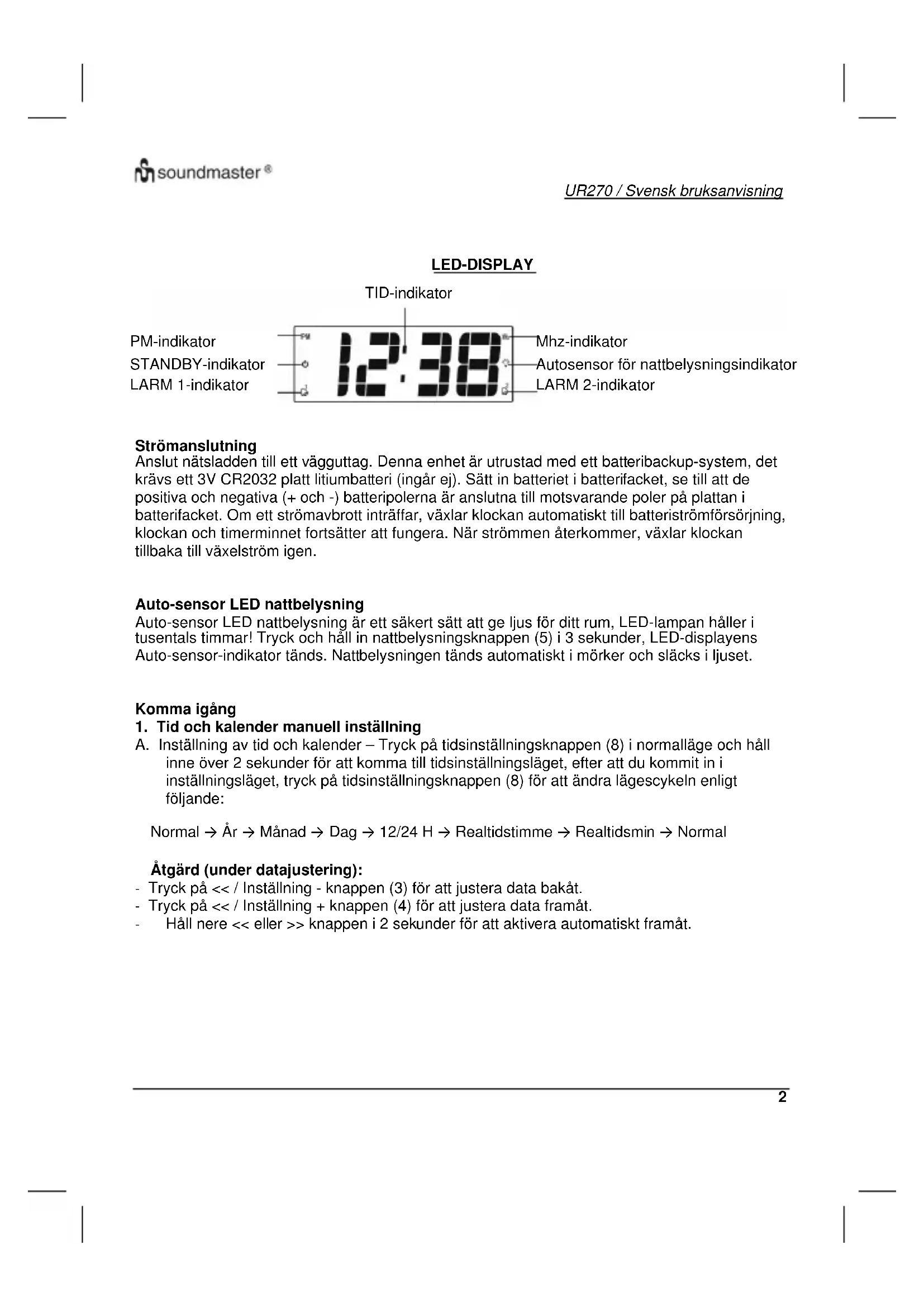Hitta enhetens manual gratis UR270RO Soundmaster i PDF-format.