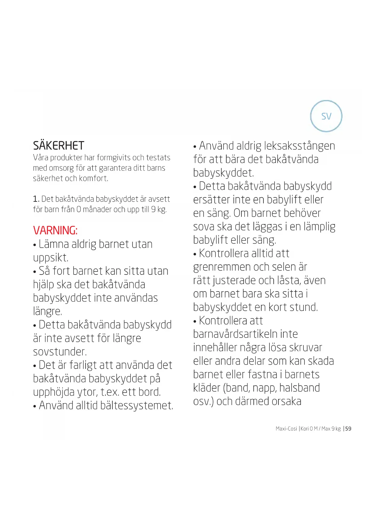 för barn från 0 månader och upp till 9 kg. VARNING: