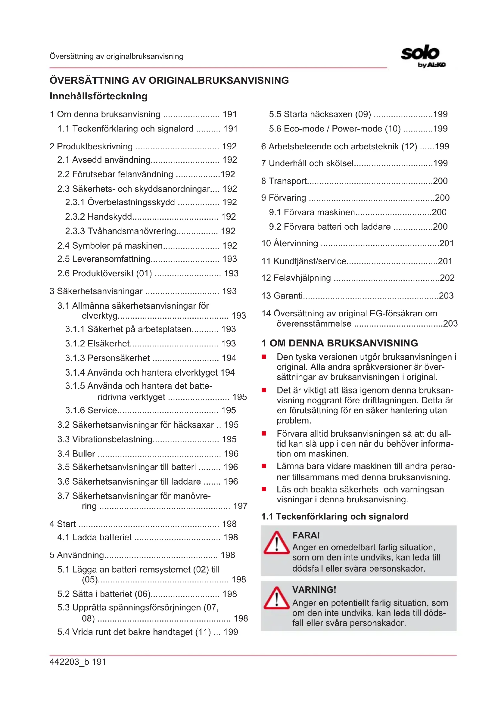 3.2 Säkerhetsanvisningar för häcksaxar .. 195