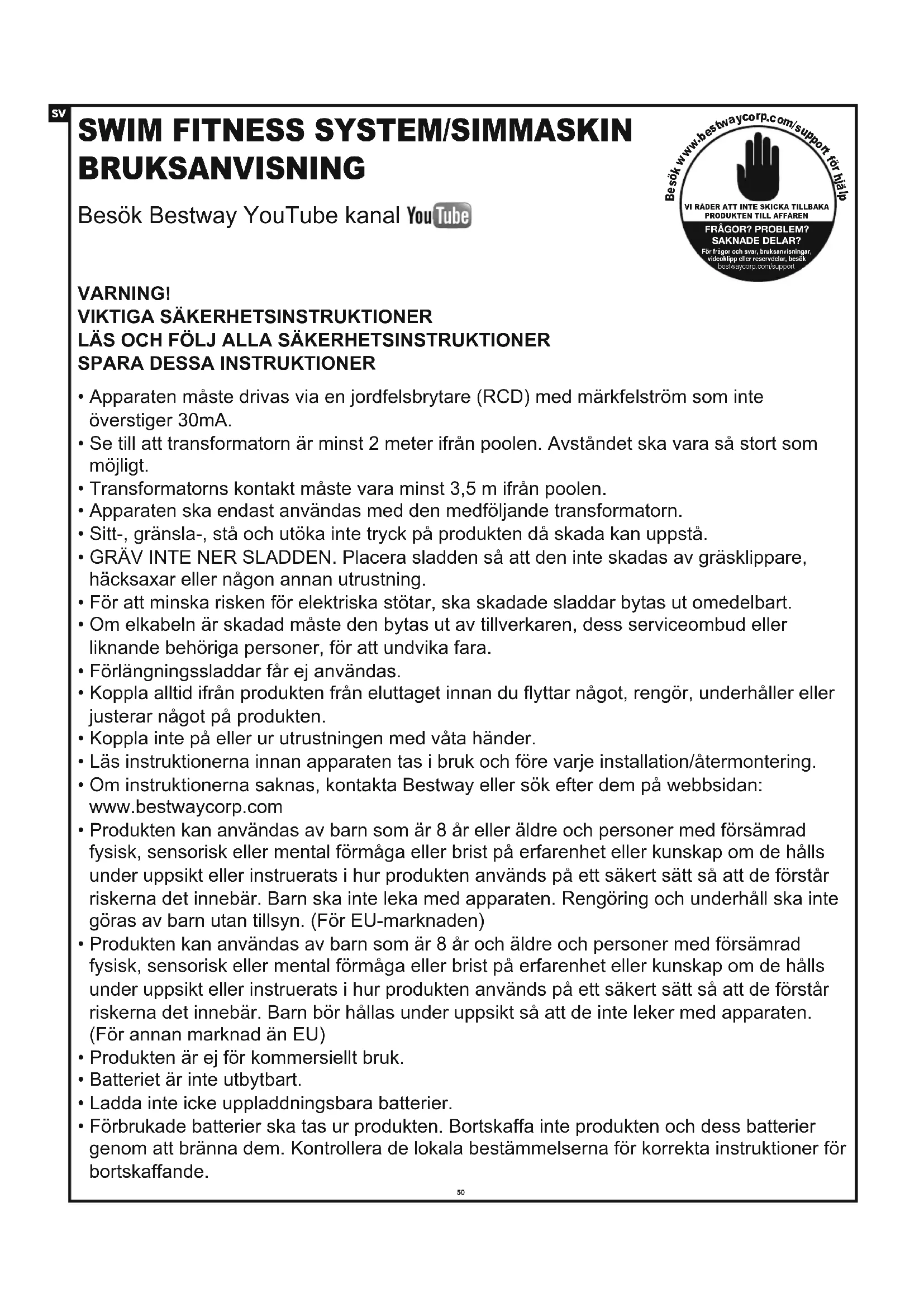 VI RÅDER ATT INTE SKICKA TILLBAKAPRODUKTEN TILL AFFÄRENFRÅGOR? PROBLEM?SAKNADE DELAR?För frågor och svar, bruksanvisningar,videoklipp eller reservdelar, besökbestwaycorp.com/support