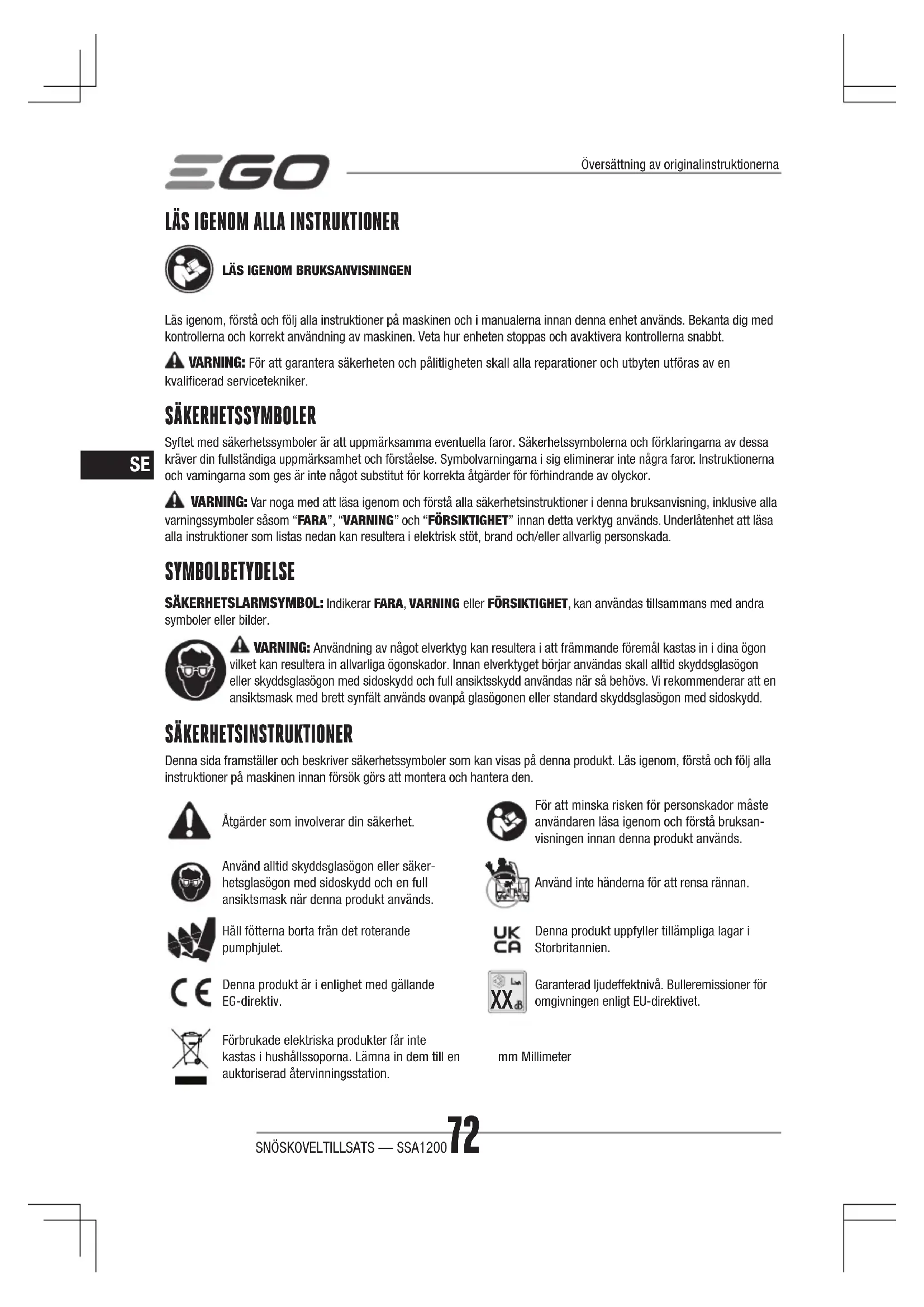 BRUKSANVISNING SSA1200 EGO