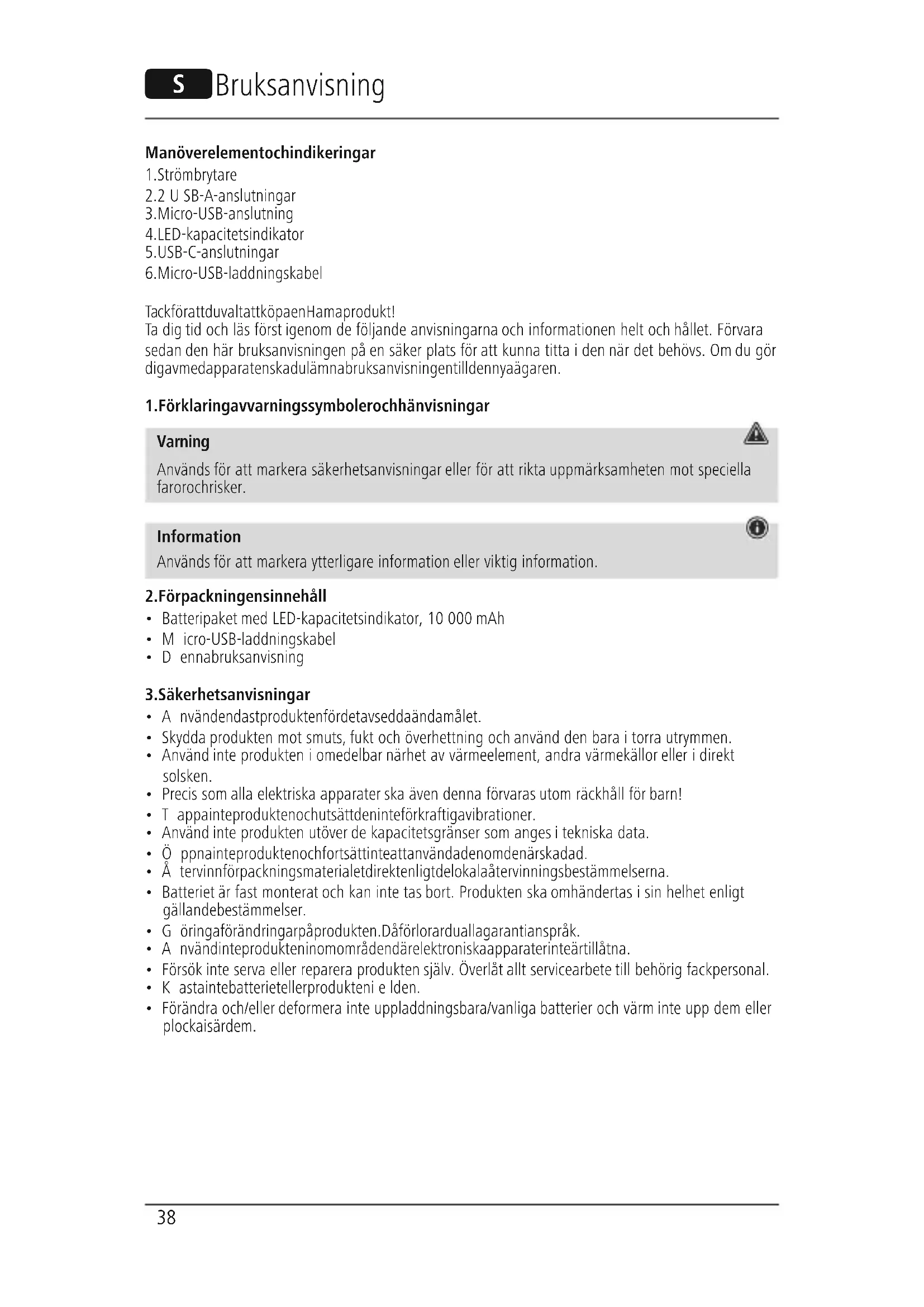 Tack för att du valt att köpa en Hamaprodukt! Ta dig tid och läs först igenom de följande anvisningarna och informationen helt och hållet. Förvara sedan den här bruksanvisningen på en säker plats för att kunna titta iden när det behövs. Om du gör dig av med apparaten ska du lämna bruksanvisningen till den nya ägaren.