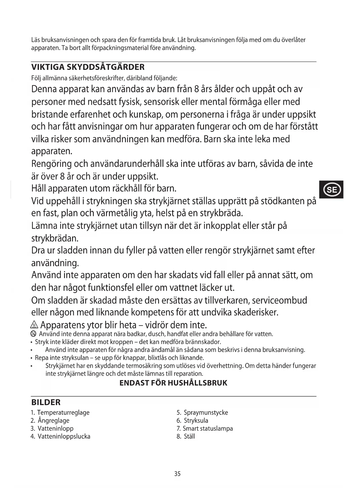 Anvand inte apparaten for nagra andra andamal an sadana som beskrivs i denna bruksanvising. - Repa inte stryksulan - se upp for knappar, bixtlås och liknande.
