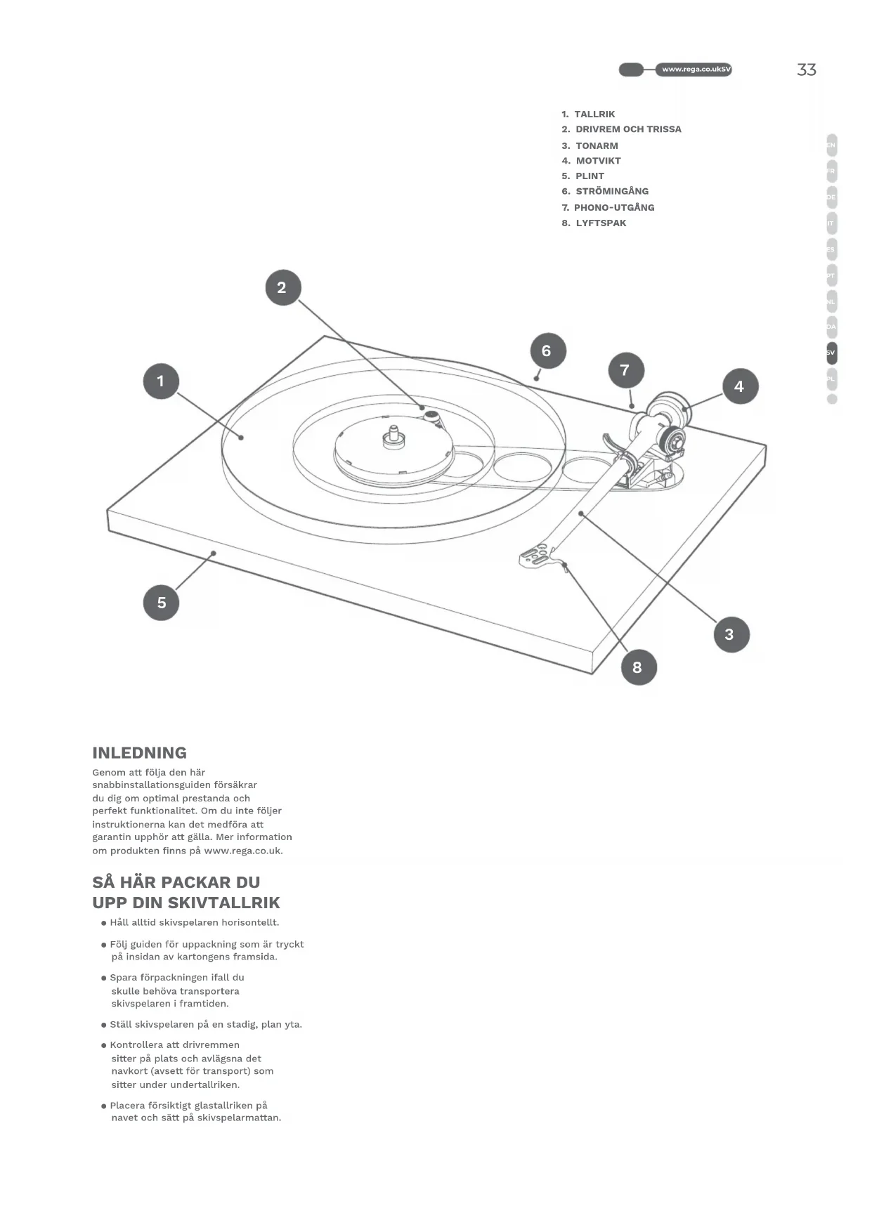 INLEDNING Genom a följa den här snabbinstallationsguiden försäkrar du dig om optimal prestanda och perfekt funktionalitet. Om du inte följer instruktionerna kan det medföra a garantin upphör a gälla. Mer information om produkten finns på www.rega.co.uk.