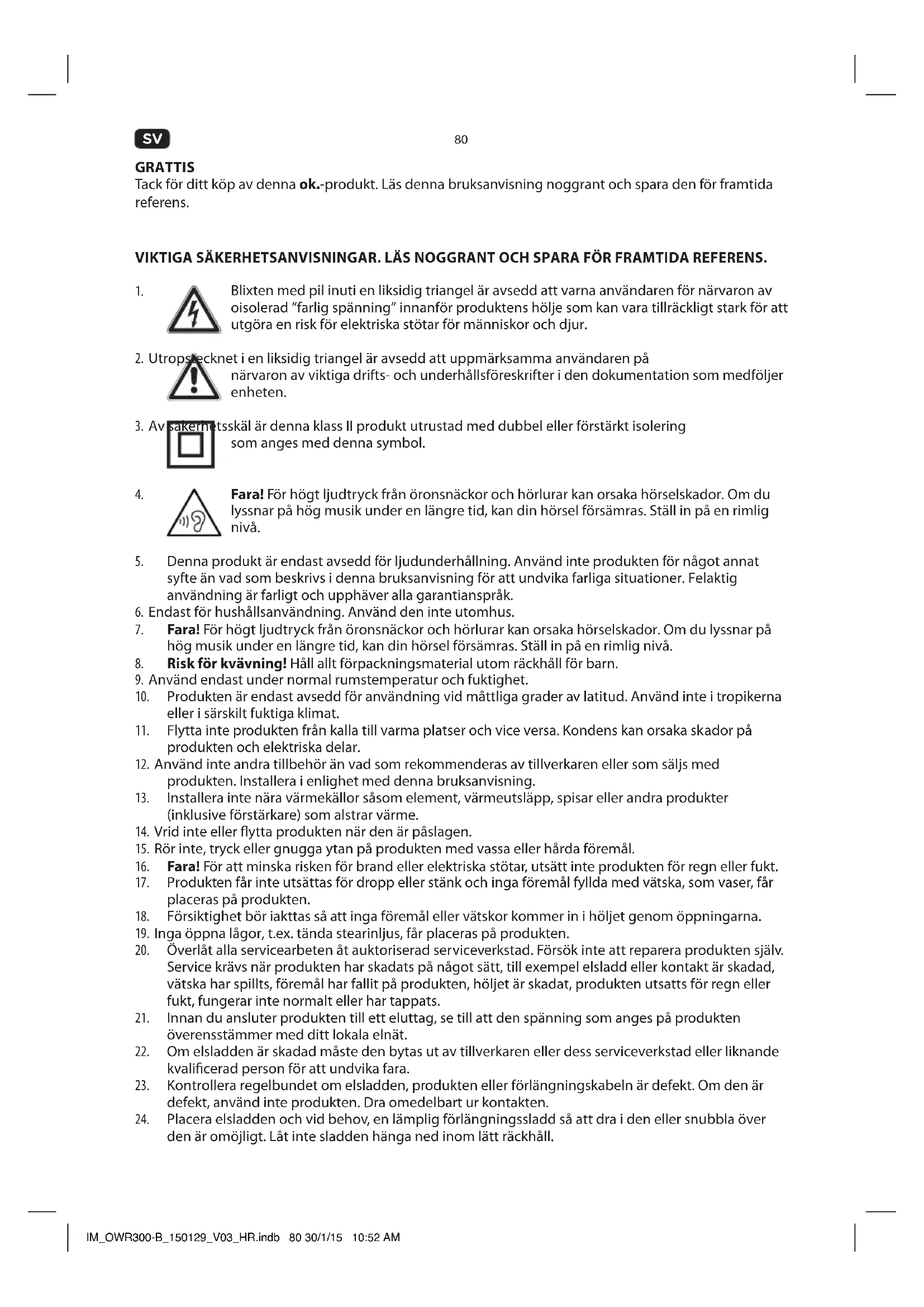 GRATTIS Tack för ditt köp av denna ok.-produkt. Läs denna bruksanvisning noggrant och spara den för framtida referens. VIKTIGA SÄKERHETSANVISNINGAR. LÄS NOGGRANT OCH SPARA FÖR FRAMTIDA REFERENS.