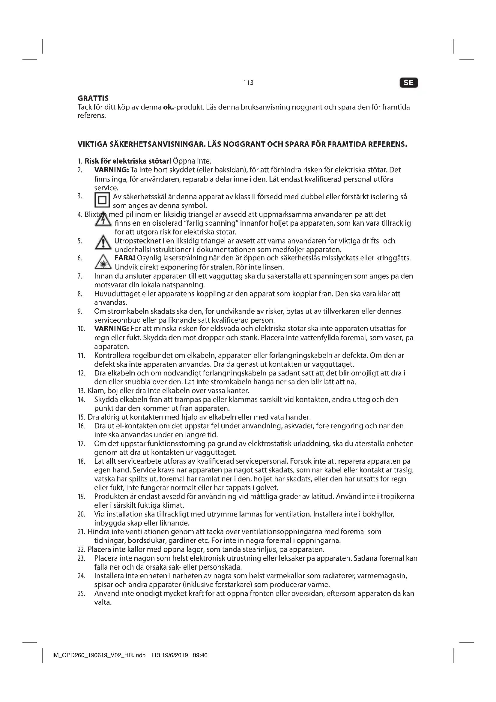 GRATTIS Tack för ditt köp av denna ok.-produkt. Läs denna bruksanvisning noggrant och spara den för framtida referens. VIKTIGA SÄKERHETSANVISNINGAR. LÄS NOGGRANT OCH SPARA FÖR FRAMTIDA REFERENS.