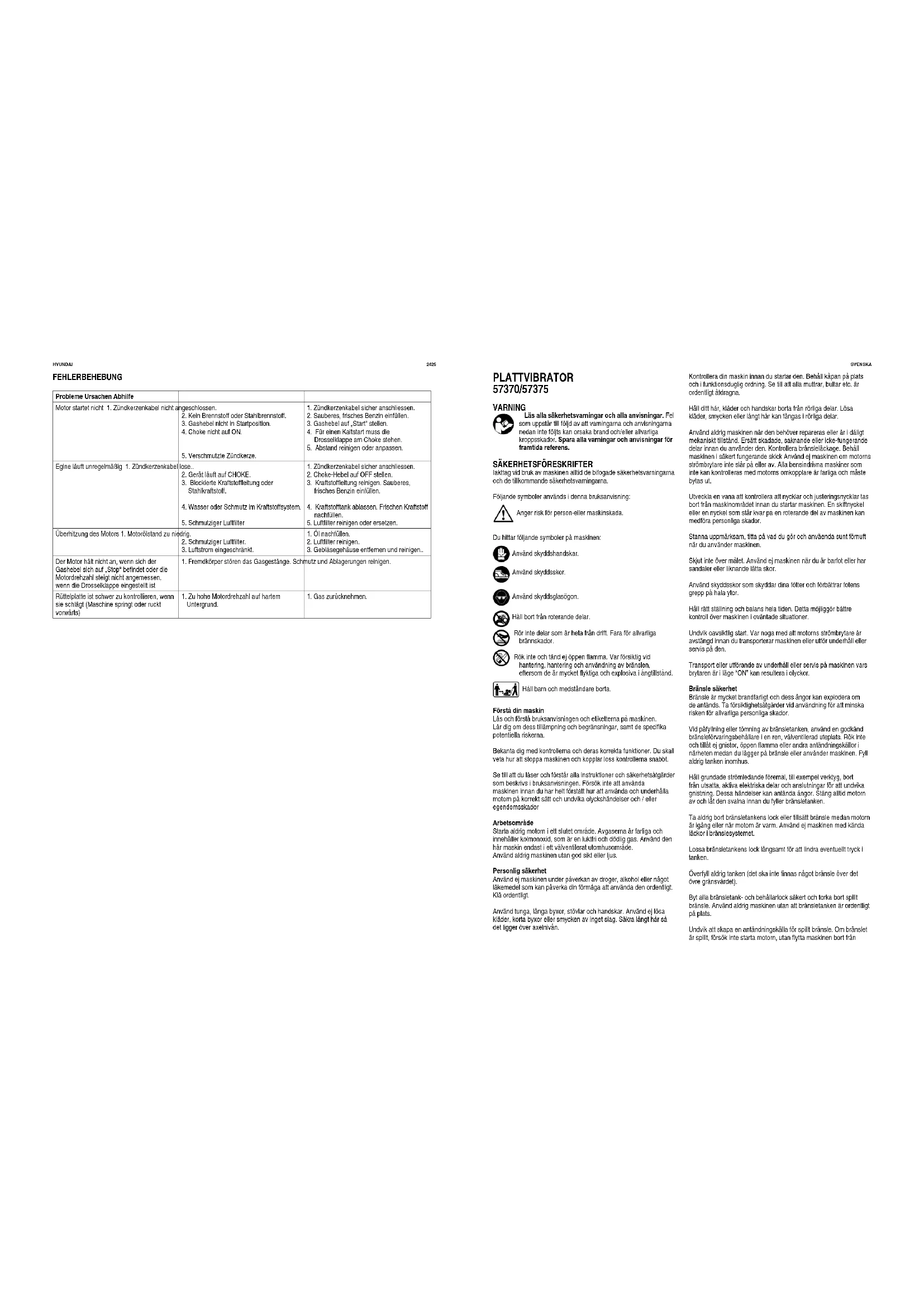 | Platvibratorn ar svar att styrn ar den bultar(maskin hopper erller latertram) | 1. För högt motorvandinál påHardmark. | 1. Ställ in gassregagel pålagshestaget. |