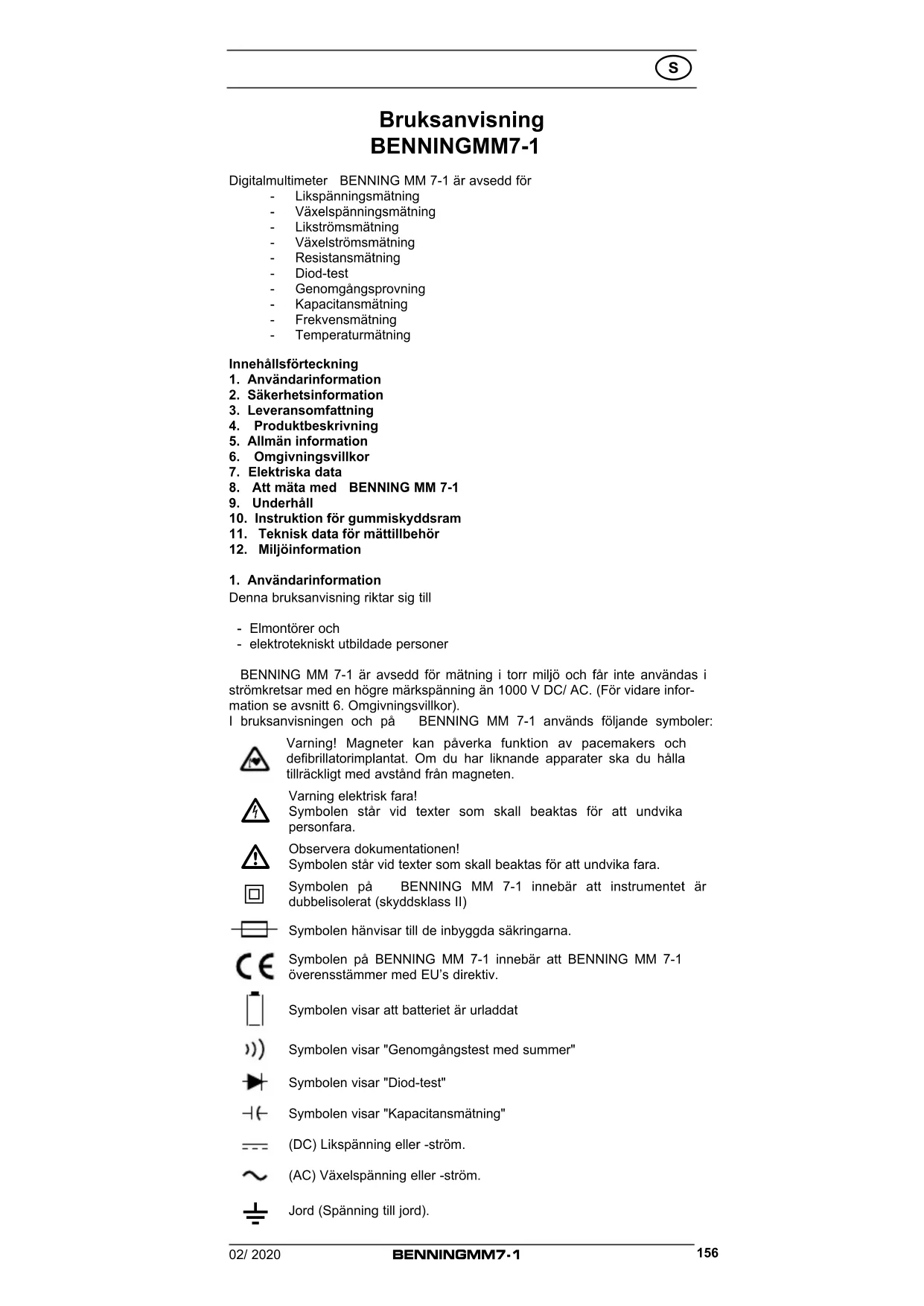 Hitta enhetens manual gratis MM 71 BENNING i PDF-format.