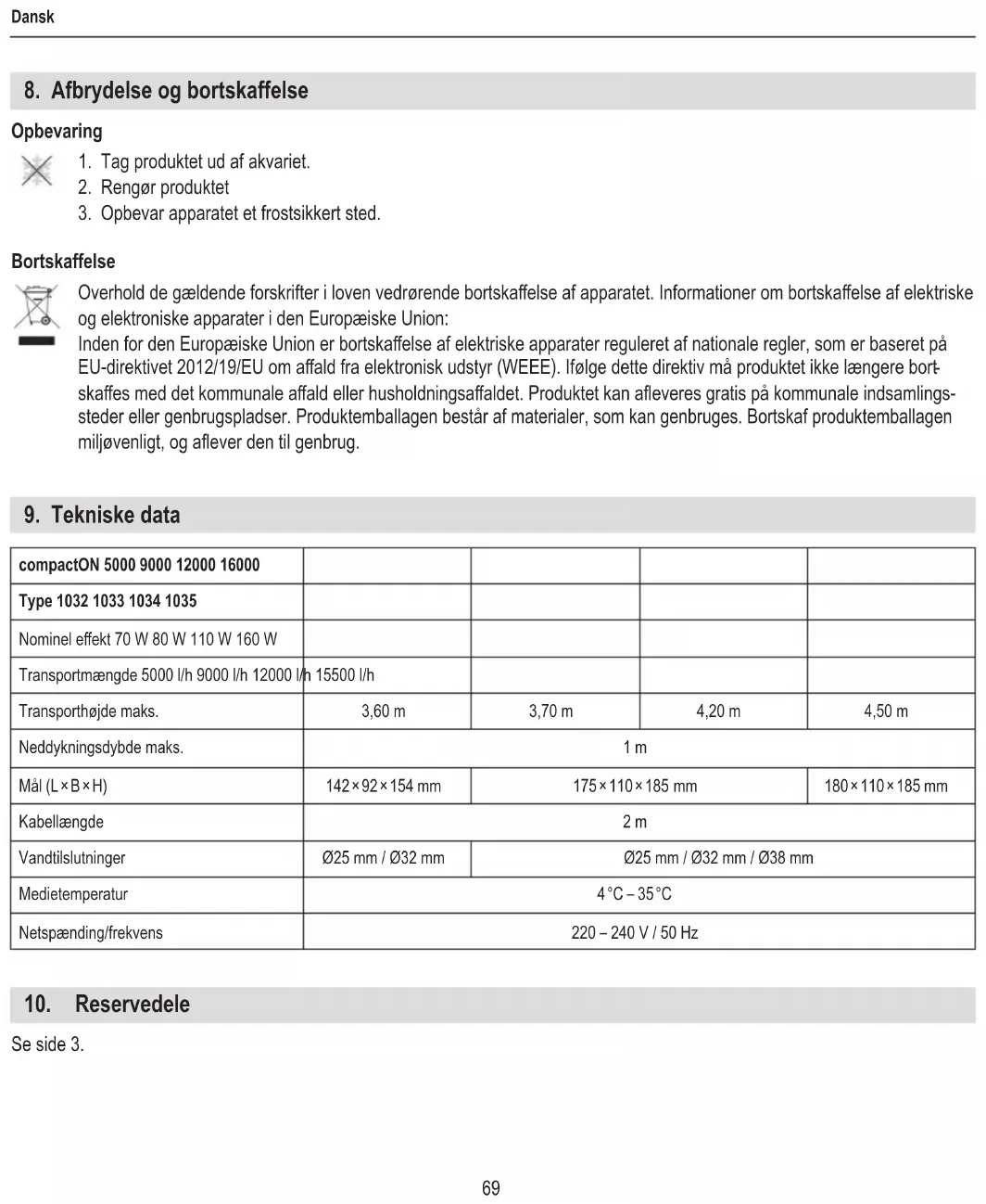 Se side 3.70 Svenska Bruksanvisning (översättning) Universalpump compactON 5000 / 9000 / 12000 / 16000