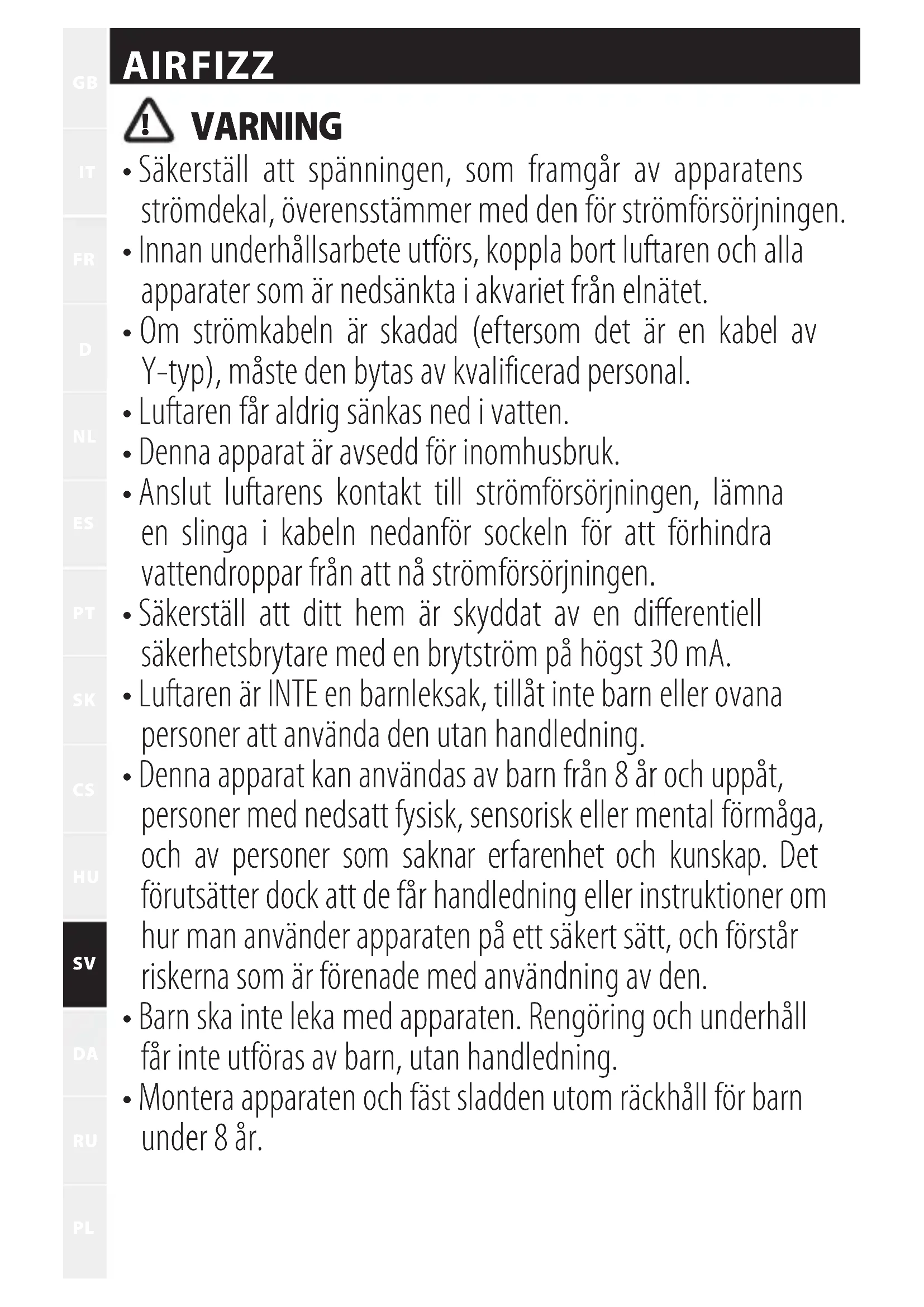 - Luftaren är INTE en barnleksak, tillåt inte barn eller ovana personer att använda den utan handledning.