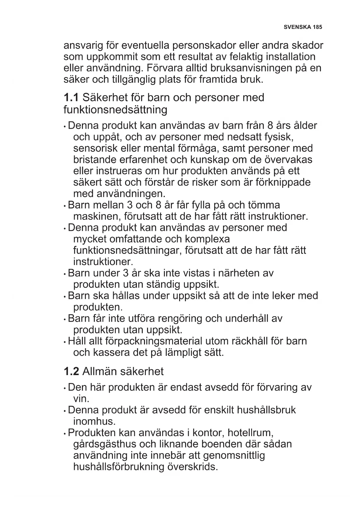 1.1 Säkerhet för barn och personer med