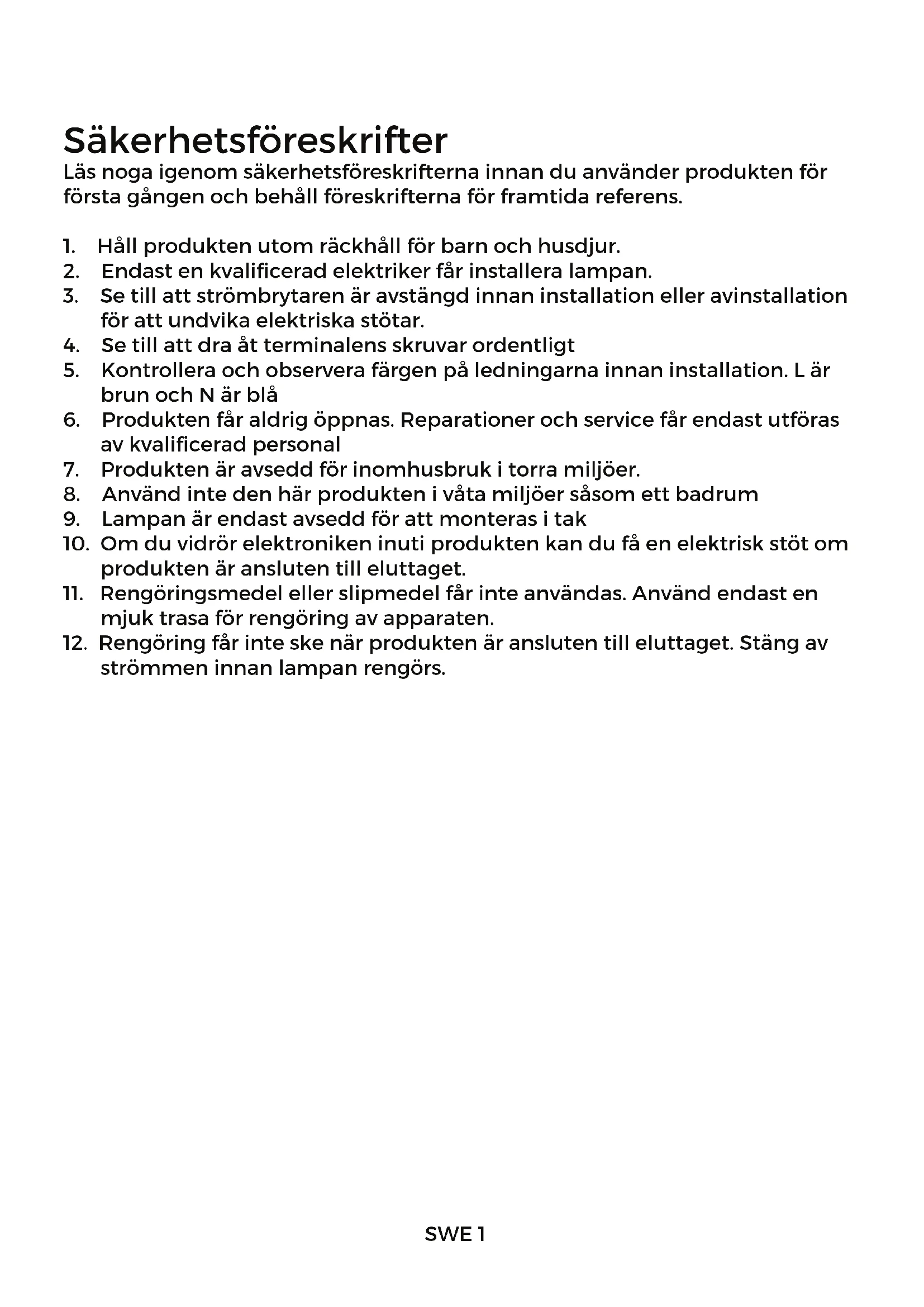 1. Håll produkten utom räckhåll för barn och husdjur.
