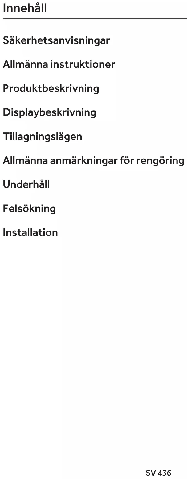 - Ugnen måste vara avstängd innan de avtagbara delarna tas ut. Efter rengöring, sätt tillbaka delarna enligt instruktionerna. SäkerhetsanvisningarSV 438