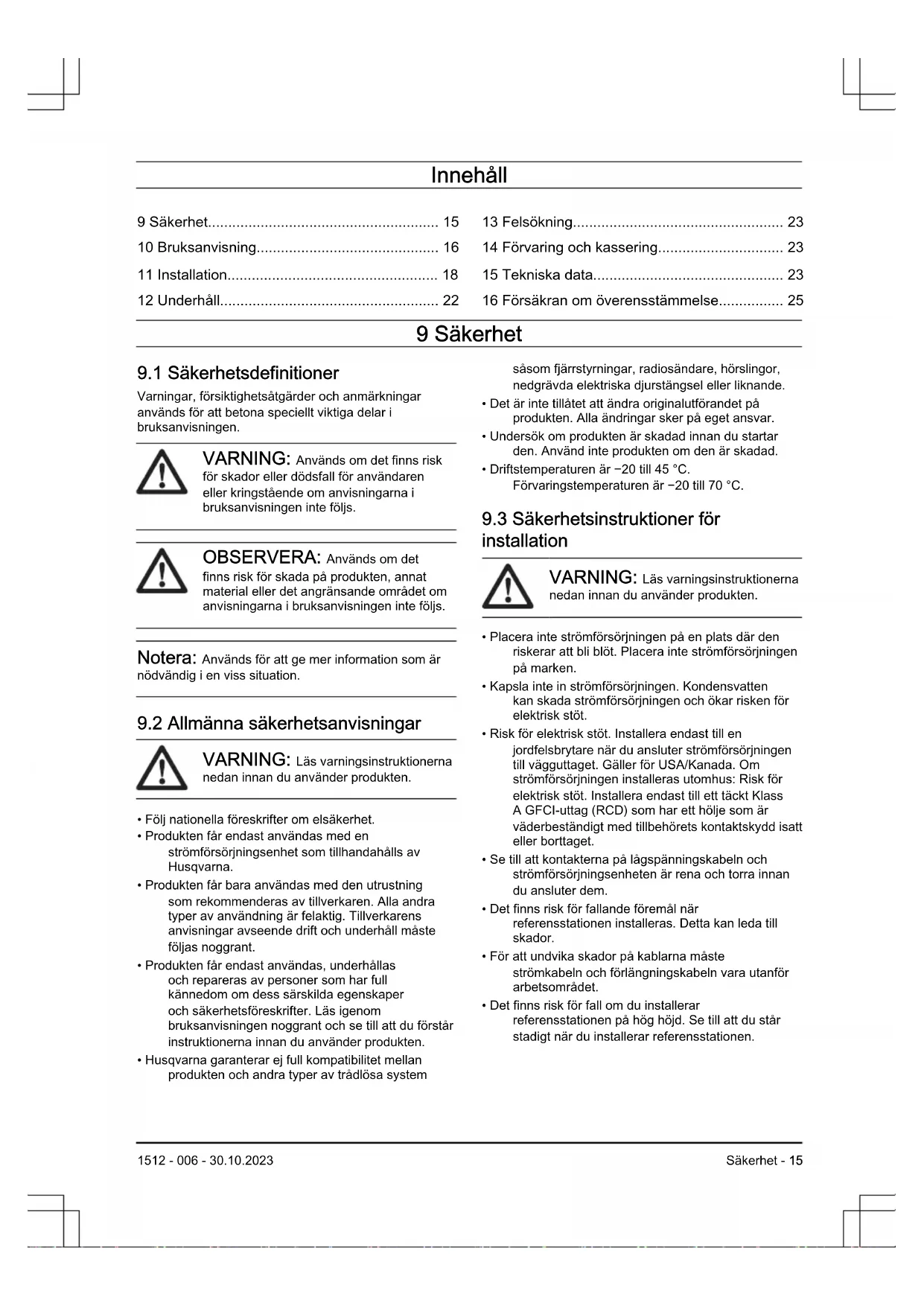 - Tekniska data 1512 - 006 - 30.10.202316 Försäkran om överensstämmelse