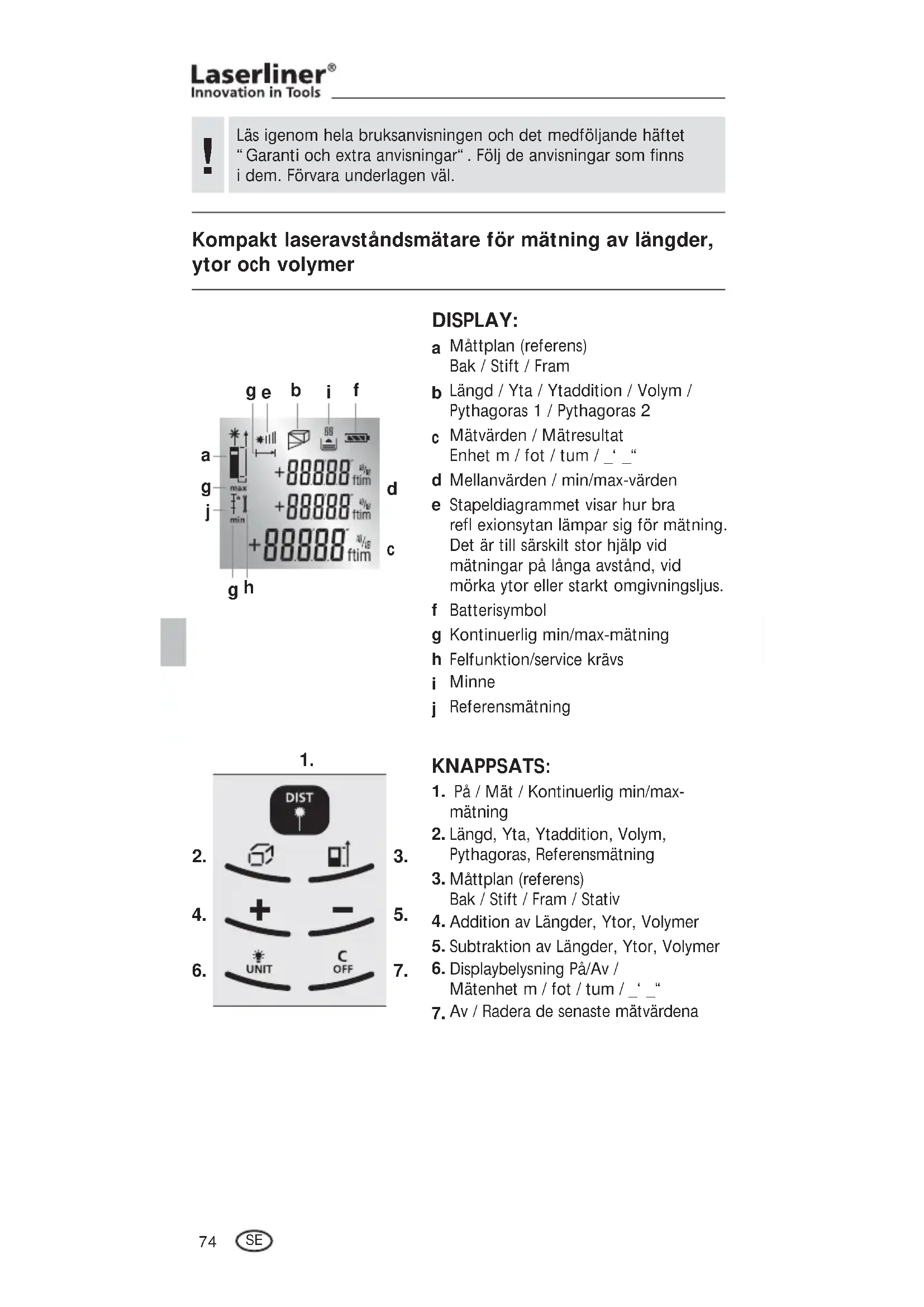 BRUKSANVISNING DistanceMaster Pocket Laserliner