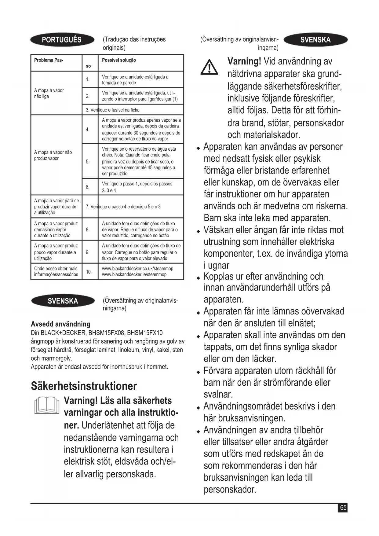 Hitta enhetens manual gratis BHSM15FX08 BLACK & DECKER i PDF-format.