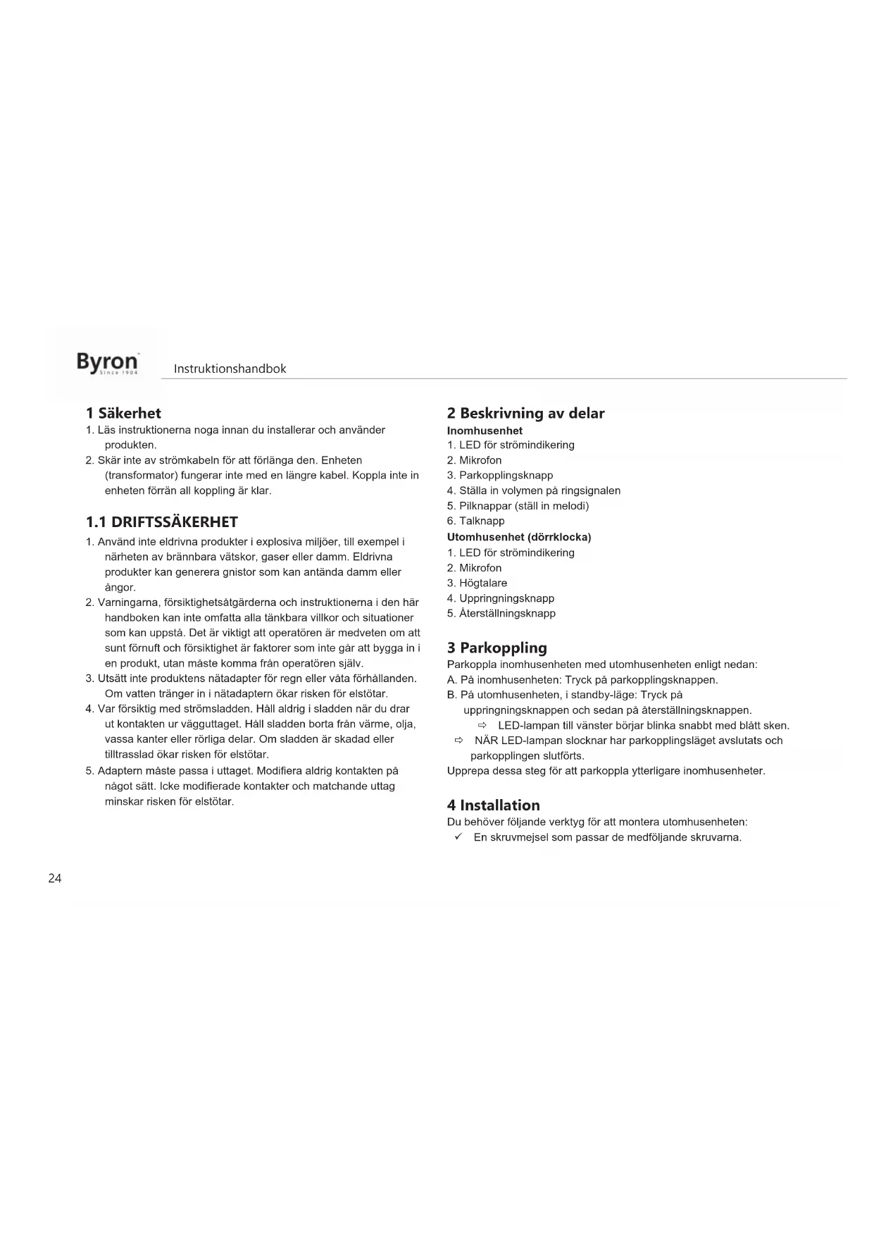 DIC24815 - Dörrklockor BYRON - Gratis bruksanvisning och manual