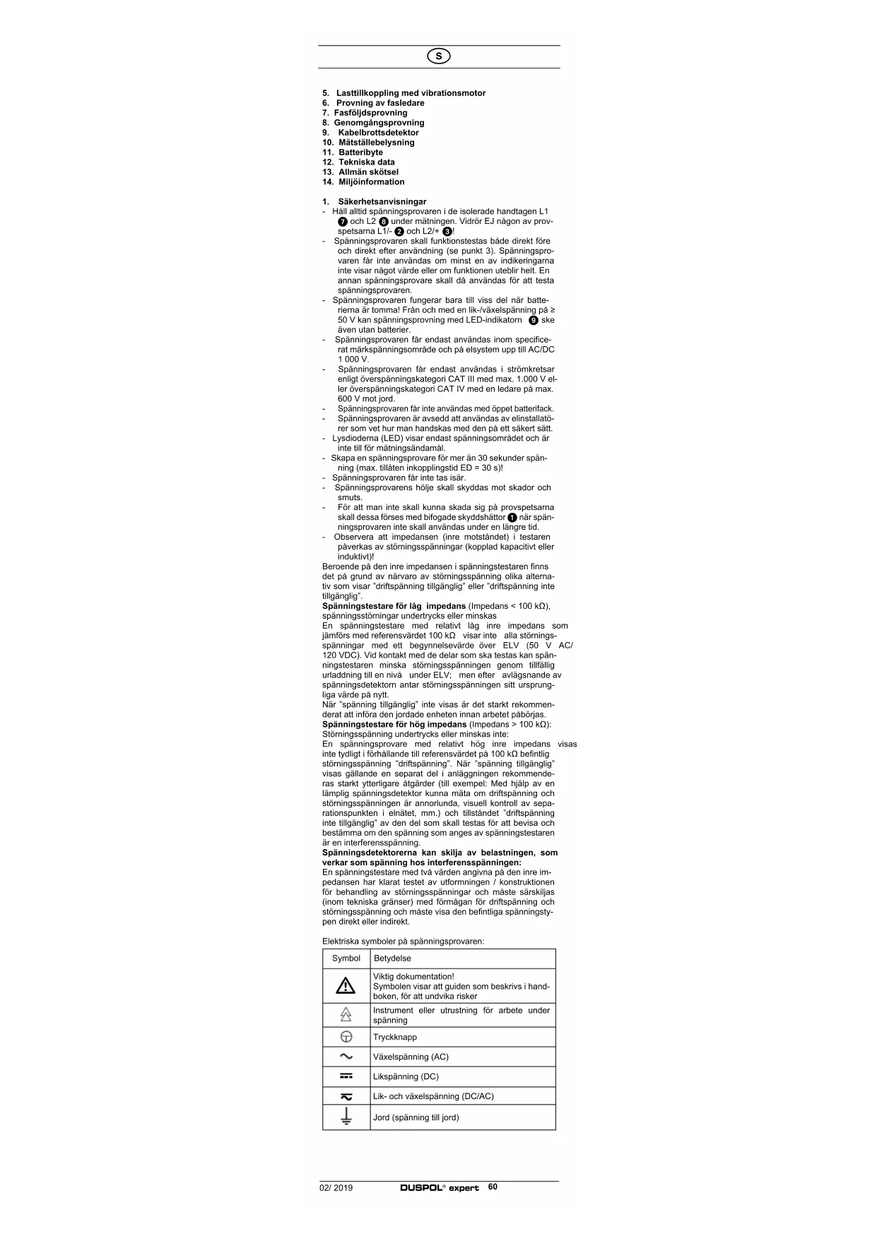 expert Läs noga igenom bruksanvisningen och säkerhetsanvisning- arna innan du använder spänningsprovaren DUSPOL