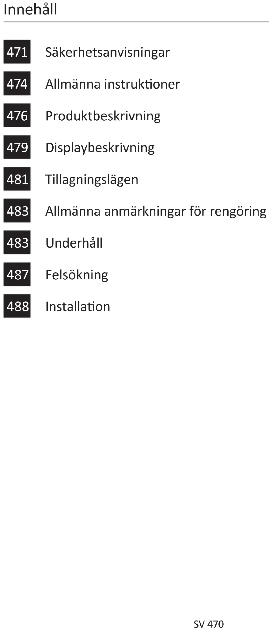 Varning: Se ll a apparaten är sval innan du rör vid den. Var försikg med alla heta ytor då det nns risk för brännskador. Använd desllerat eller drickbart vaen. 100 mlSV 487 Avfallshantering och miljöskydd Apparaten är märkt i enlighet med EU-direkv 2012/19/ EU gällande elektriska och elektron- iska apparater (WEEE). WEEE in- nehåller både miljöförstörande substanser och baselement (som kan återanvändas). Det är vikgt a WEEE genomgår specik bearbetning så a miljöförstörande ämnen avlägsnas och hanteras på rä sä, och andra material kan återvinnas. Individer kan spela en vikg roll i a säkerställa a WEEE inte blir e miljöproblem. Det är vikgt a följa några grundläggande re- gler: - WEEE ska inte betraktas som hushållsavfall. -WEEE ska tas ll en särskild återvinningsstaon som drivs kommunalt eller av e privat företag. I många länder kan stora WEEE-produkter häm- tas i hemmen. När du köper en ny apparat kan den gamla lämnas ll leverantören som måste acceptera den kostnadsfri som en engångslösning, så länge den gamla apparaten är av liknande typ och har samma funkoner som den nyinköpta apparaten.