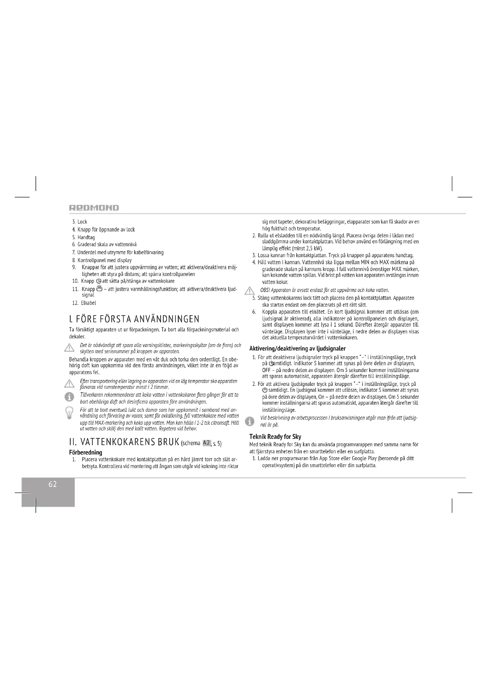 Hitta enhetens manual gratis SkyKettle M173SE Redmond i PDF-format.