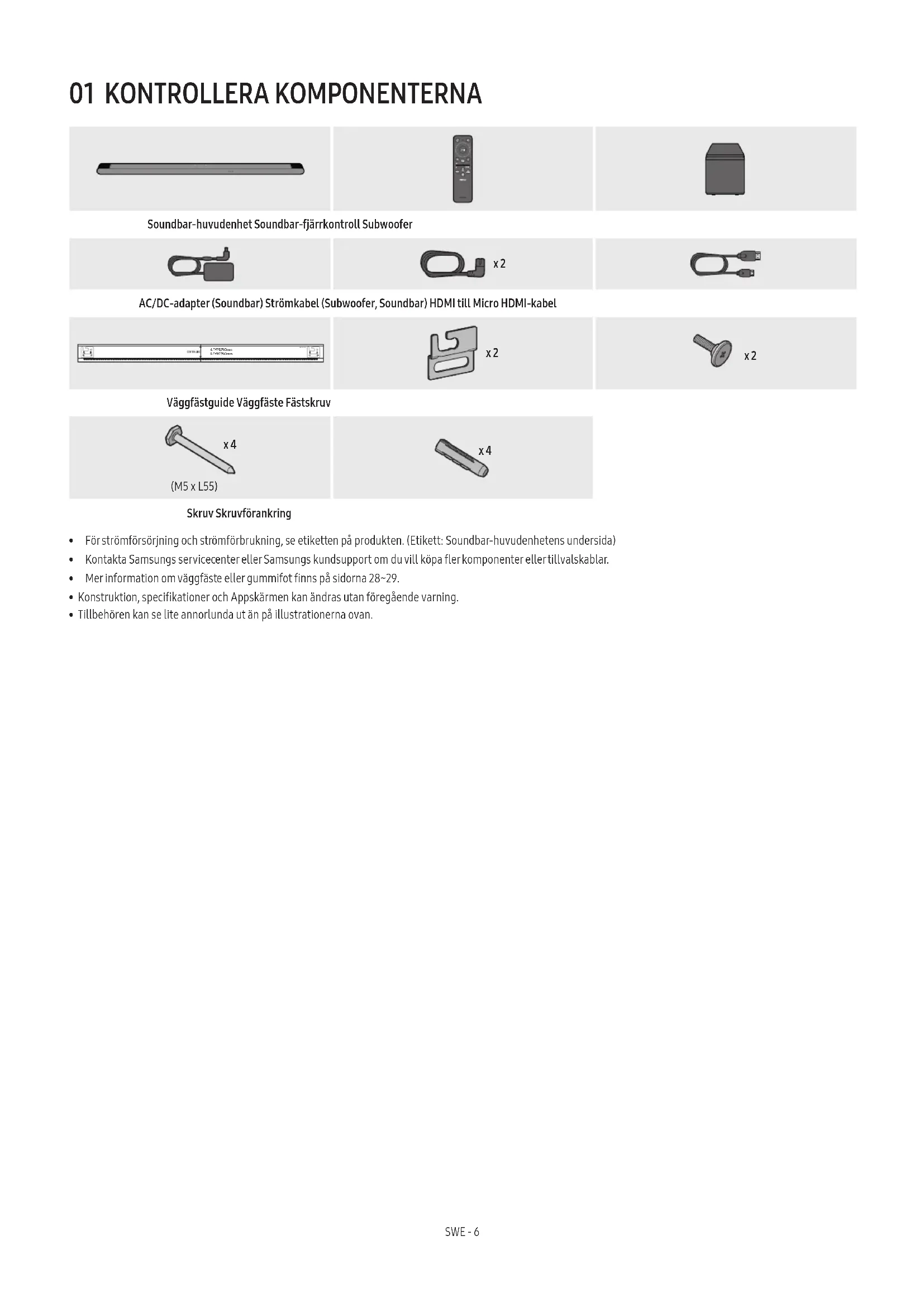 - Kontakta Samsungs servicecenter eller Samsungs kundsupport om du vill köpa er komponenter eller tillvalskablar.