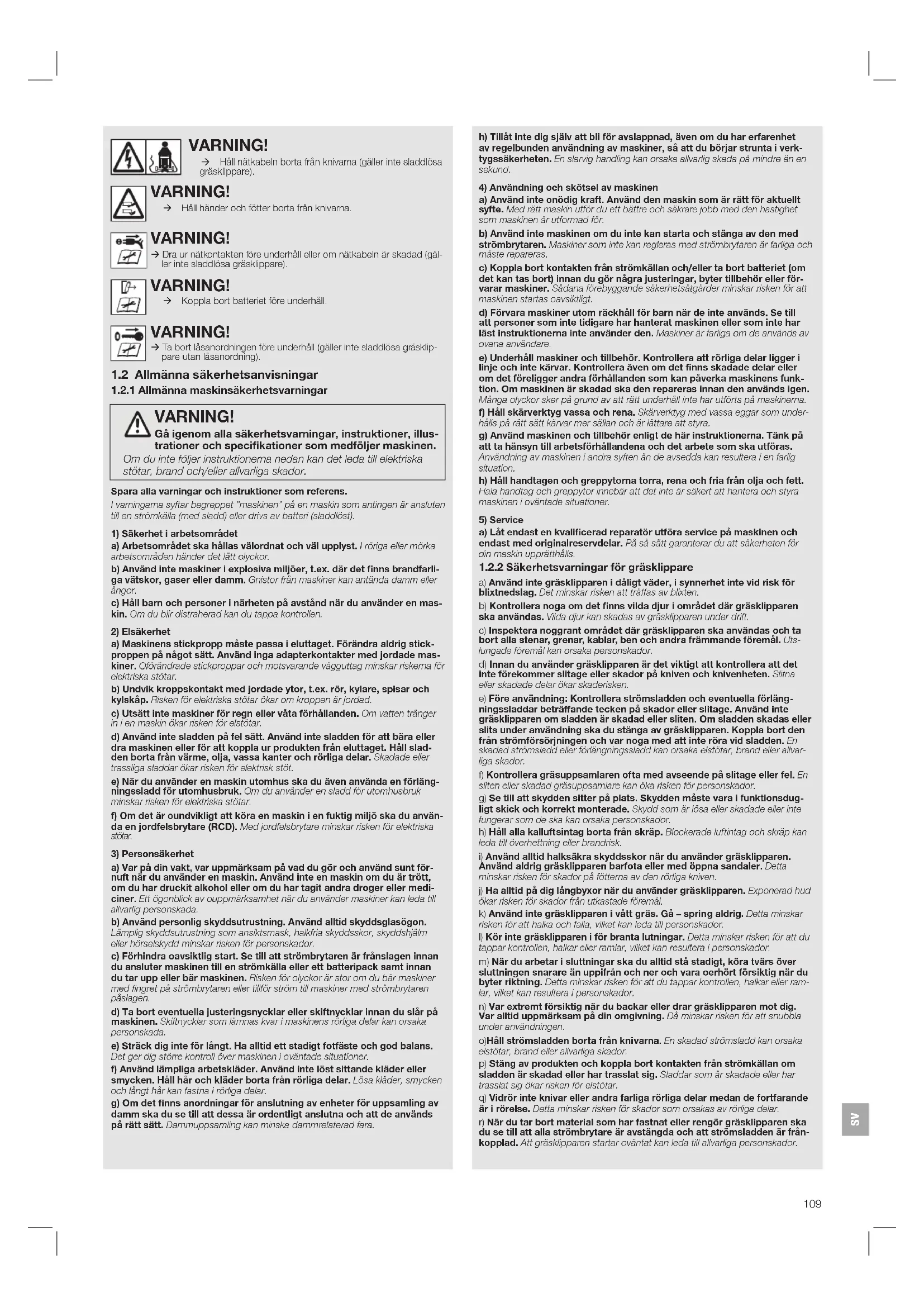1.2.2 Sakerhetsvamingar for grasklippare