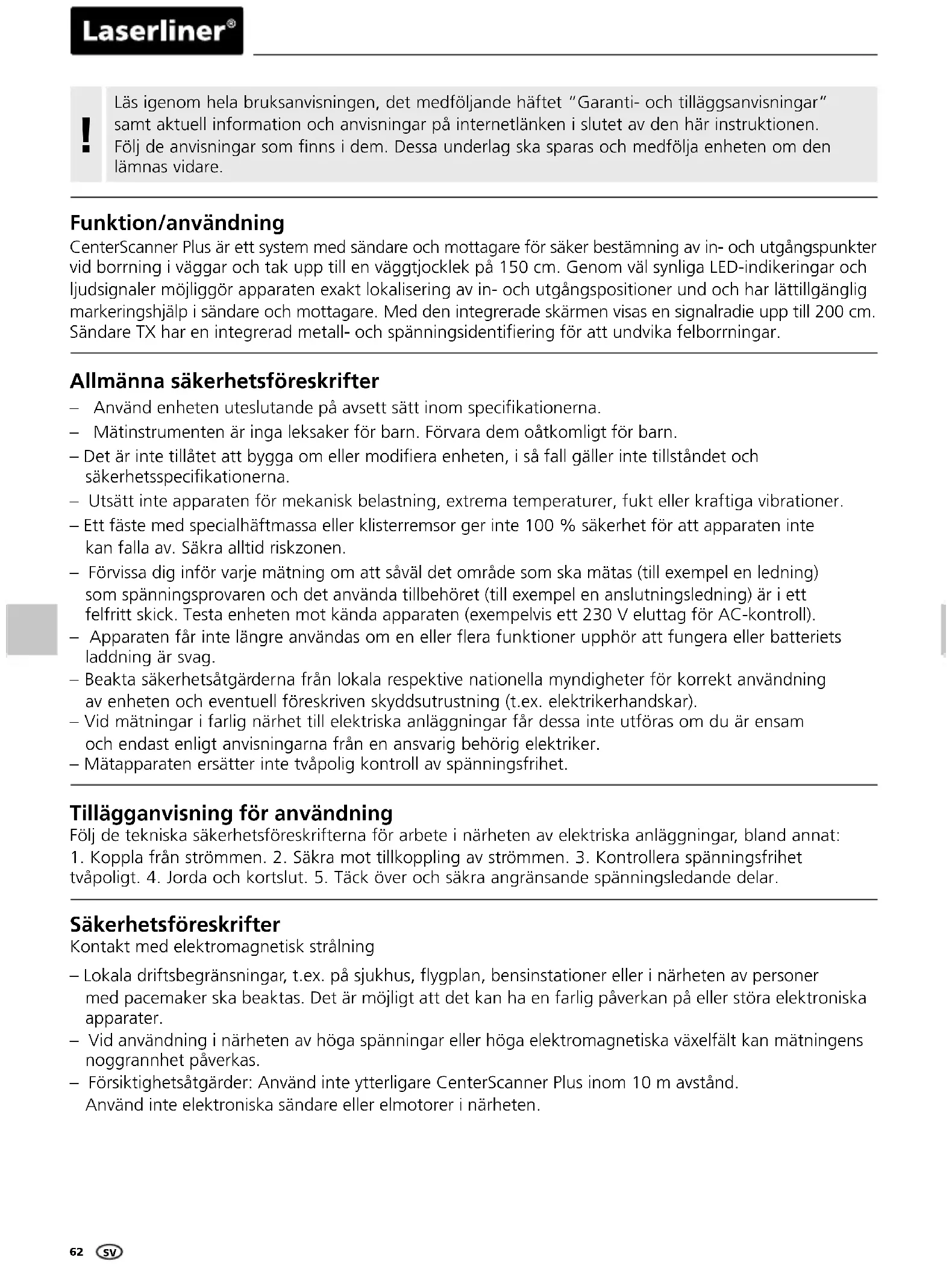 BRUKSANVISNING CenterScanner Plus Laserliner
