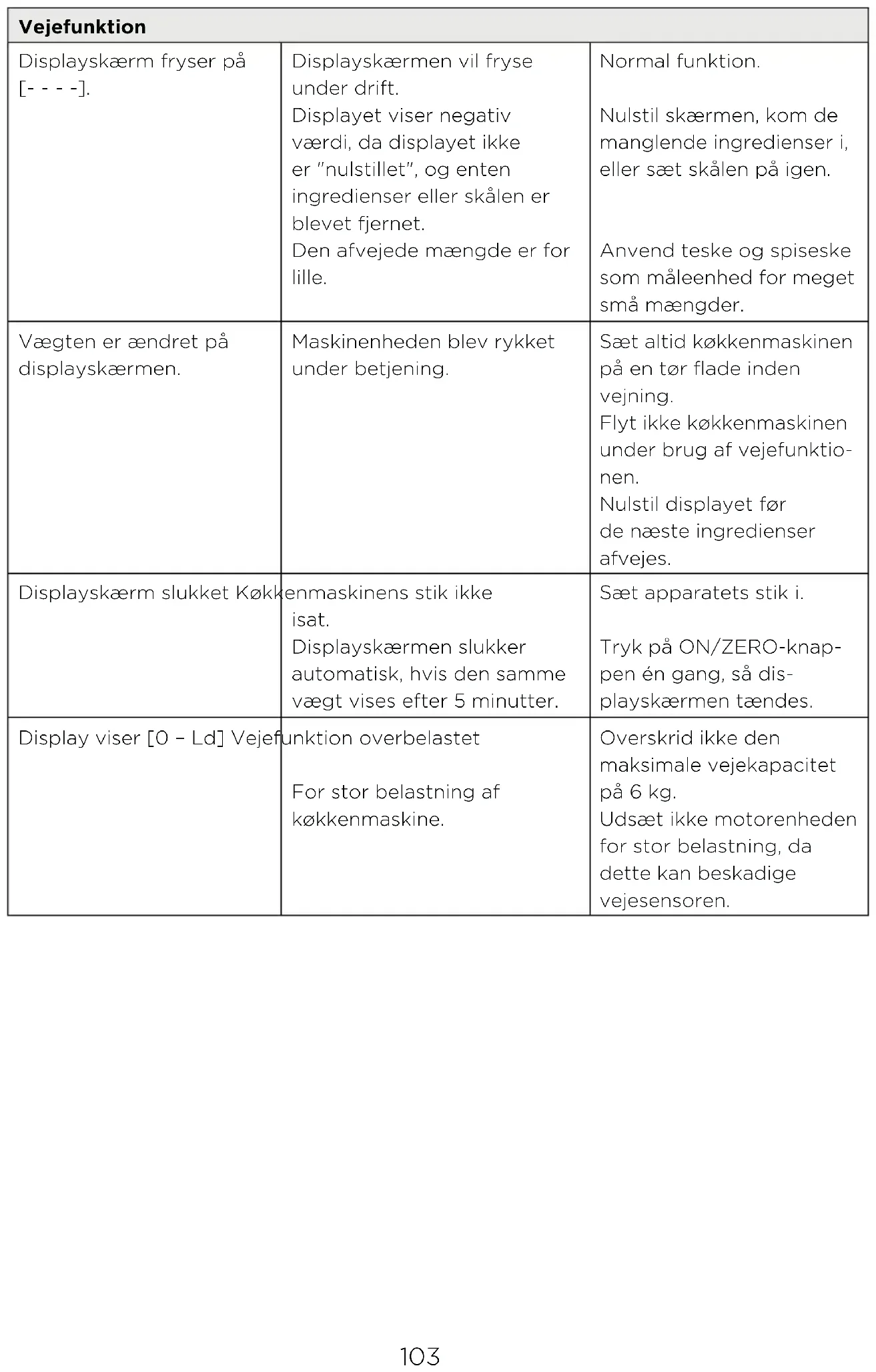 Enheten väger i steg om 1 g och användning av teskeds-/ matskedsmått rekommenderas vid vägning av små mängder.
