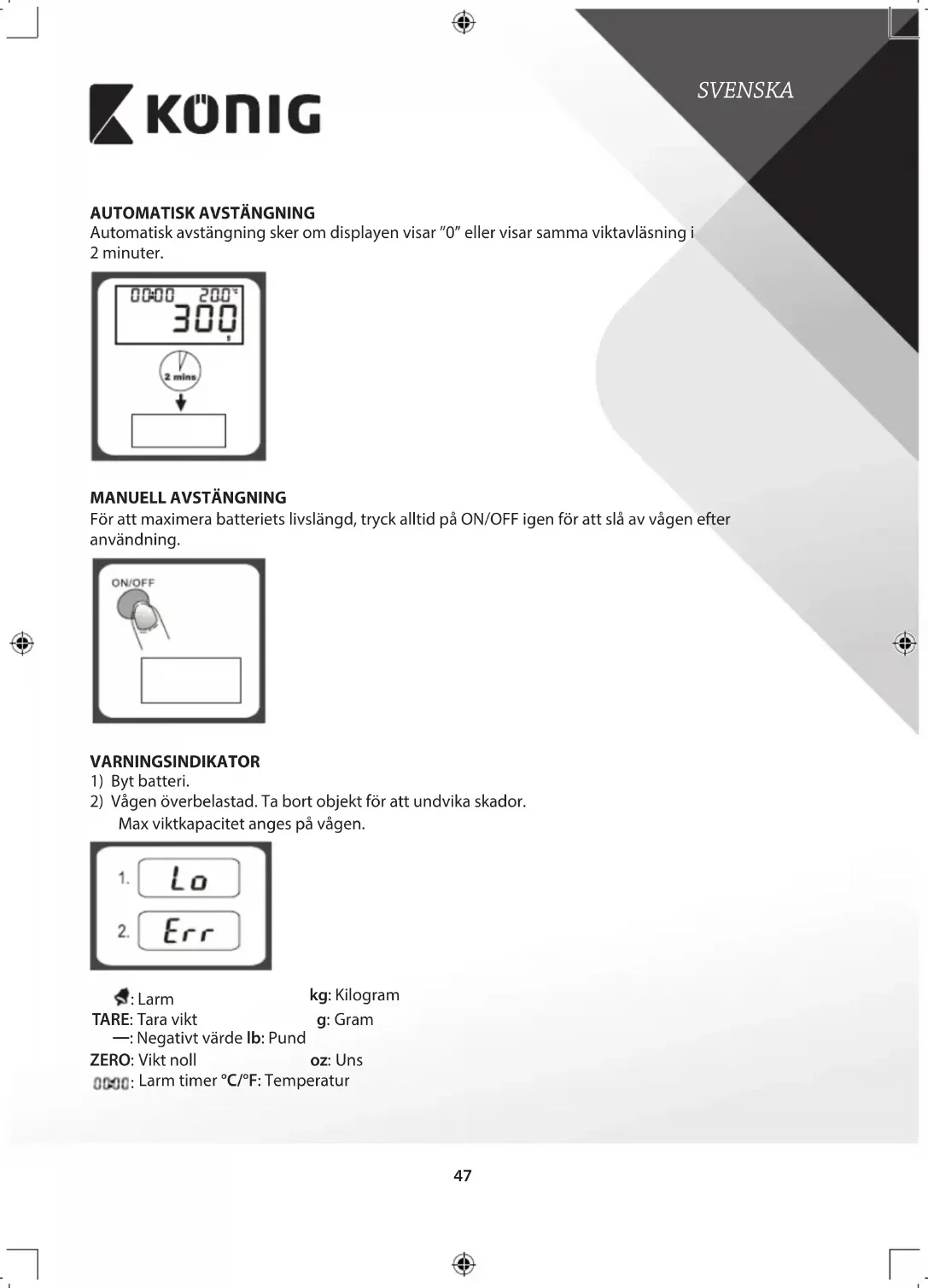 För att maximera batteriets livslängd, tryck alltid på ON/OFF igen för att slå av vågen efter användning. VARNINGSINDIKATOR