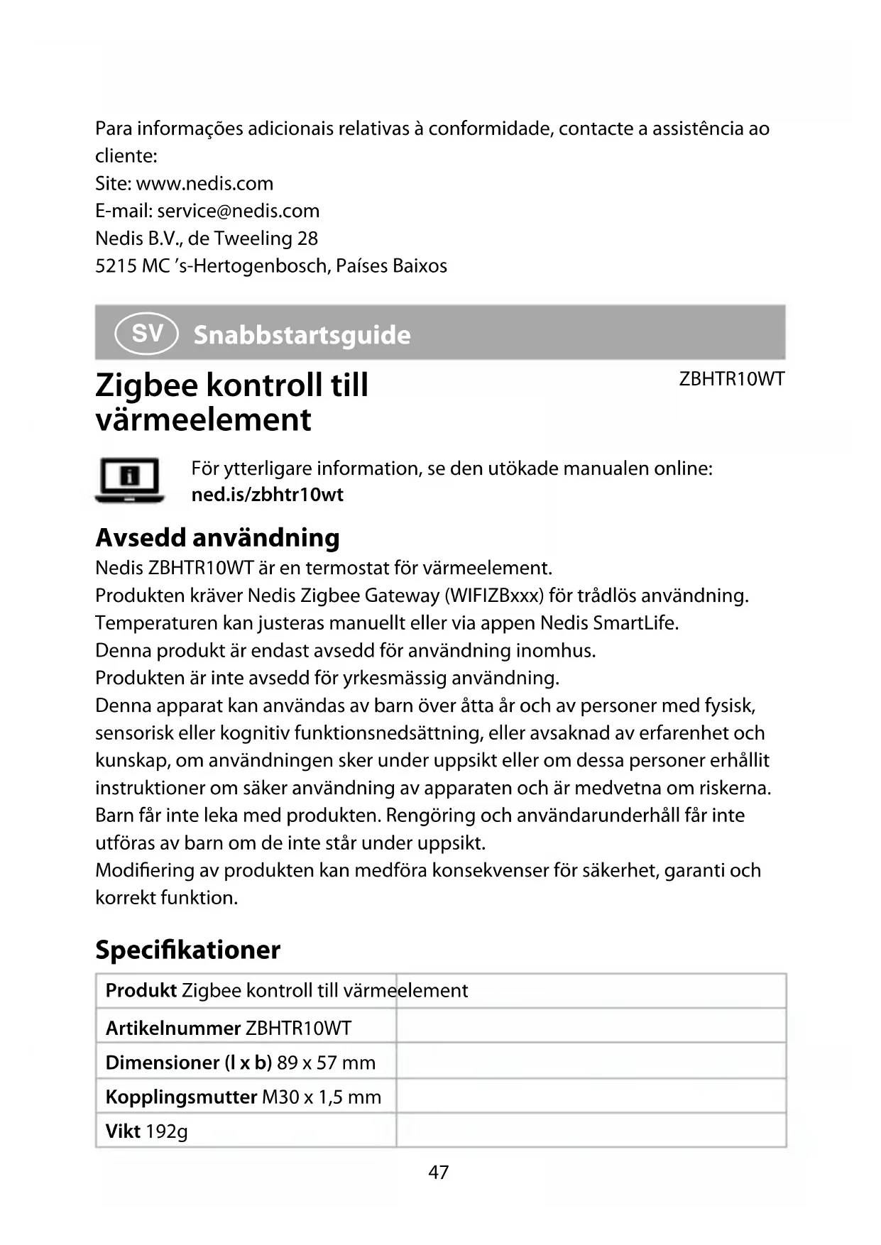 Hitta enhetens manual gratis ZBHTR10WT NEDIS i PDF-format.