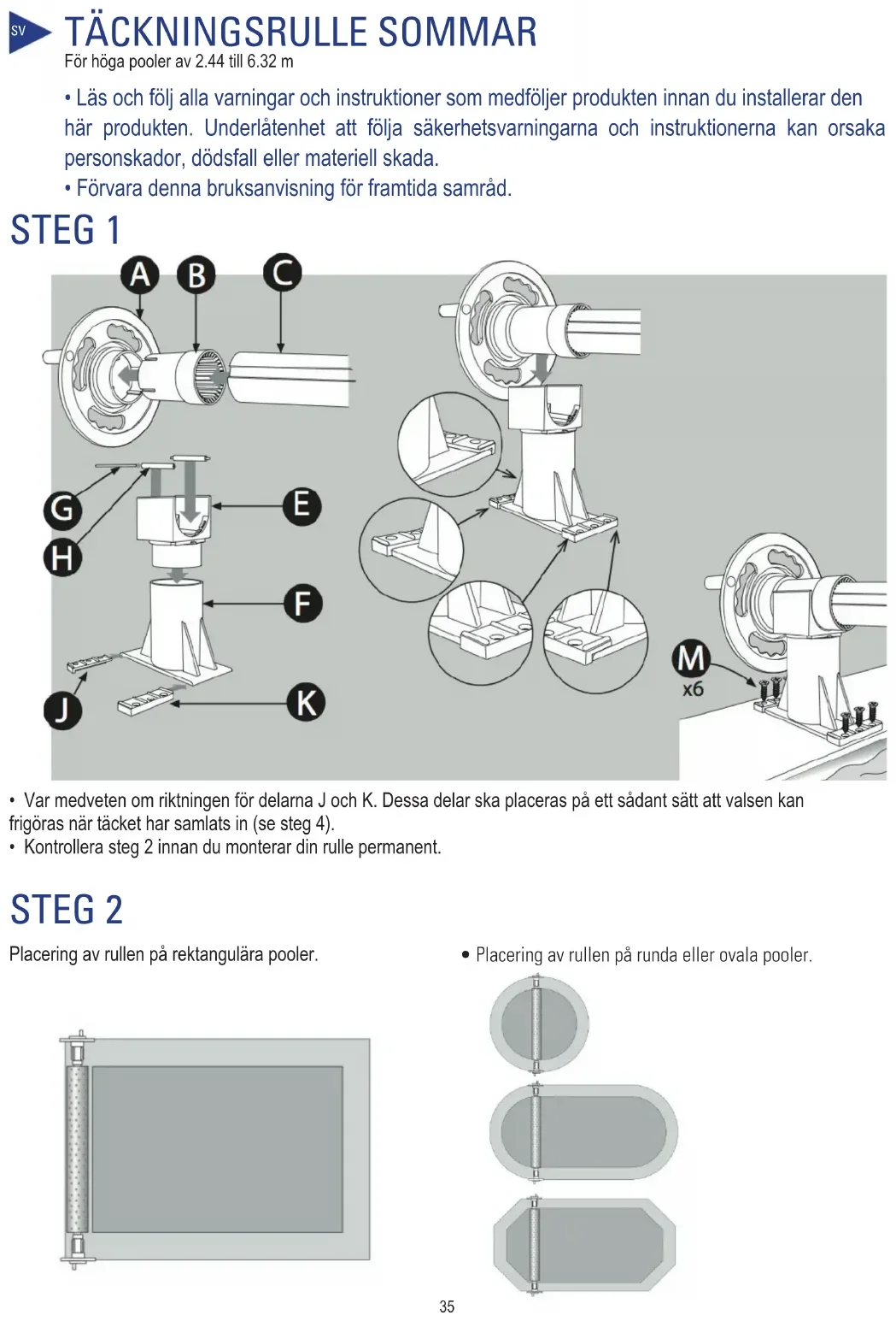 - Placering av rullen på runda eller ovala pooler.36 STEG 3