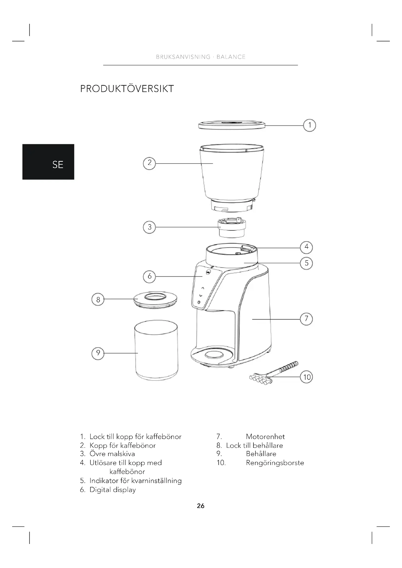 BRUKSANVISNING · BALANCE GARANTI Wilfa ger en garanti på fem (5) år på denna produkt från och med inköpsdatum. Garantin täcker tillverkningsfel eller defekter som uppstår under garantiperioden. Ditt inköpskvitto fungerar som bevis gentemot återförsäljaren om du åberopar garanti. Garantin gäller endast produkter som köps och används för privat bruk, för normala hushållsändamål. Garantin gäller inte om produkten används för kommersiella ändamål. Garantin gäller inte om produkten används felaktigt eller oaktsamt, om du underlåter att följa Wilfas anvisningar, om produkten har modierats eller om reparation har utförts av en icke auktoriserad person/ verkstad. Garantin omfattar vidare inte fel som uppstår till följd av normalt slitage, felaktig användning, bristande underhåll eller felaktig elektrisk spänning eller: