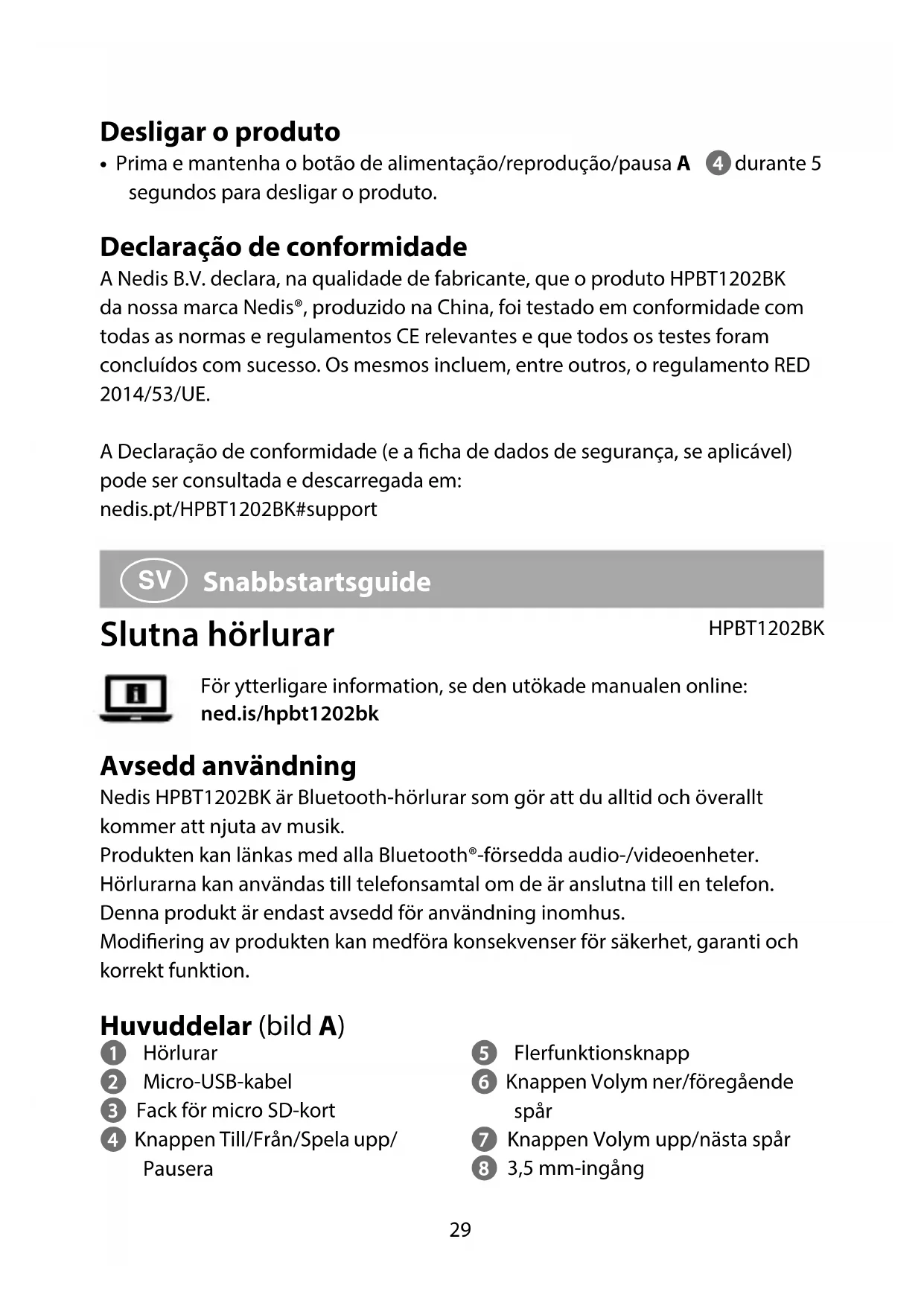 HPBT1202BK - Hörlurar NEDIS - Gratis bruksanvisning och manual
