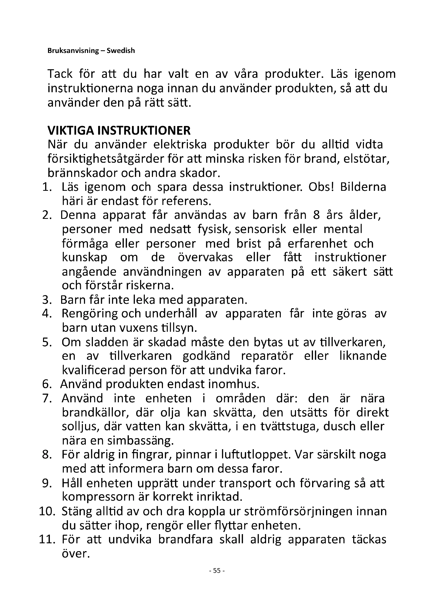 11. För att undvika brandfara skall aldrig apparaten täckas