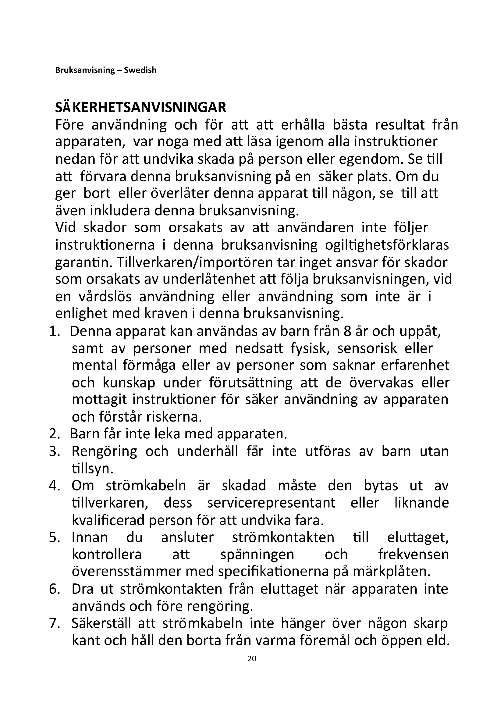 1. Denna apparat kan användas av barn från 8 år och uppåt,