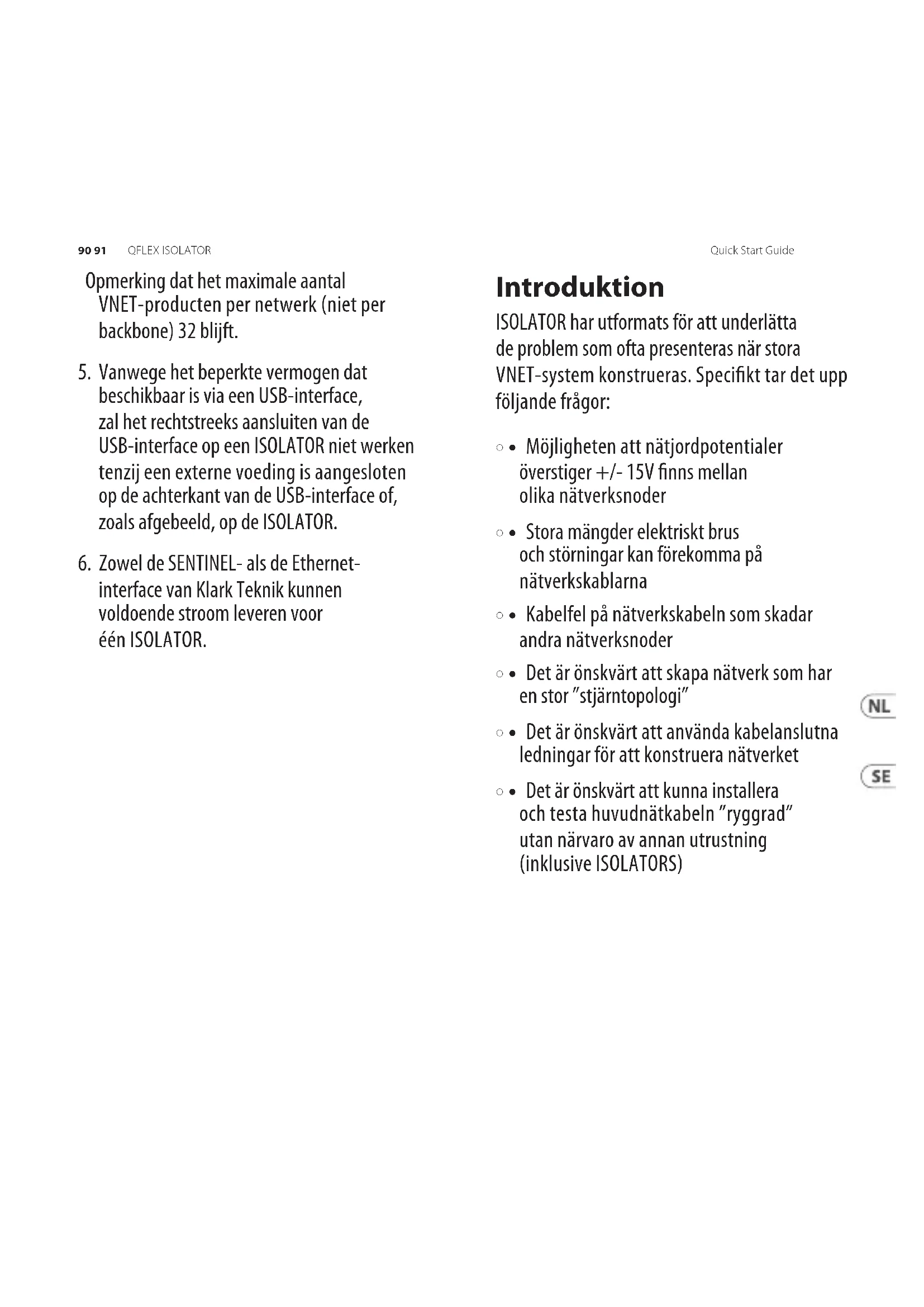 era ryggrader. Så länge ISOLATORER är lokala mot varandra och det styrande systemet kan varje ryggrad vara hela 1 km lång.96 97 Quick Start Guide QFLEX ISOLATOR Notera att det maximala antalet VNET- produkter per nätverk (inte per ryggrad) förblir 32.