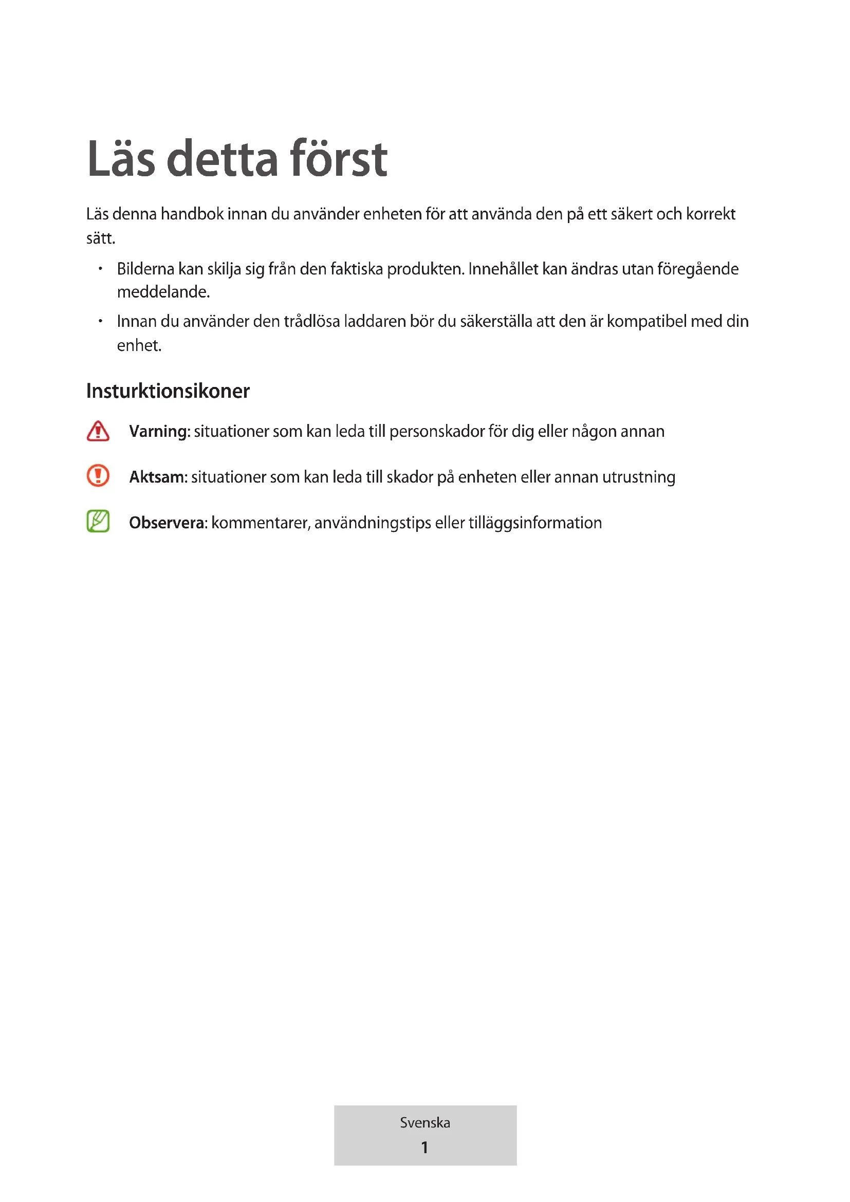Alle overige handelsmerken en auteursrechten zijn eigendom van de respectieve eigenaars.1 Svenska Läs detta först Läs denna handbok innan du använder enheten för att använda den på ett säkert och korrekt sätt.
