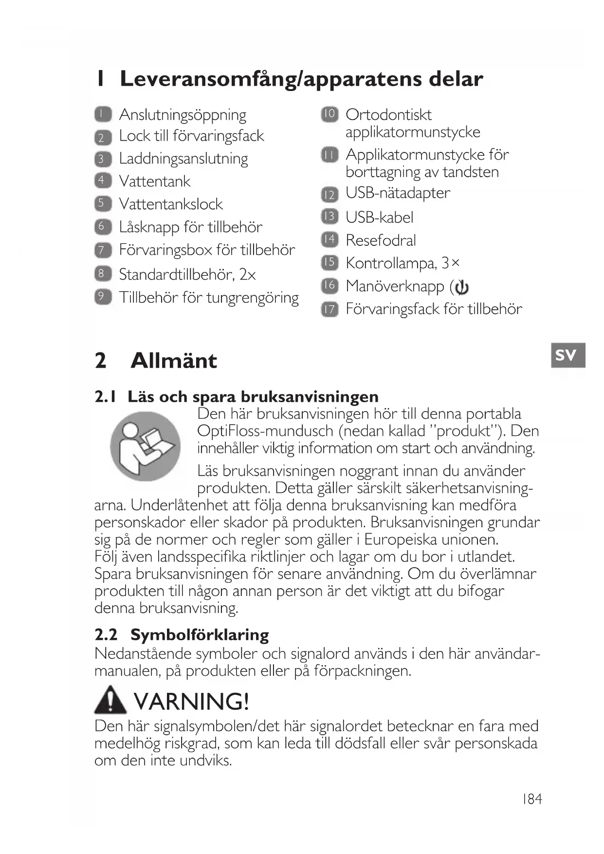2.1 Läs och spara bruksanvisningen ______________________________ 184
