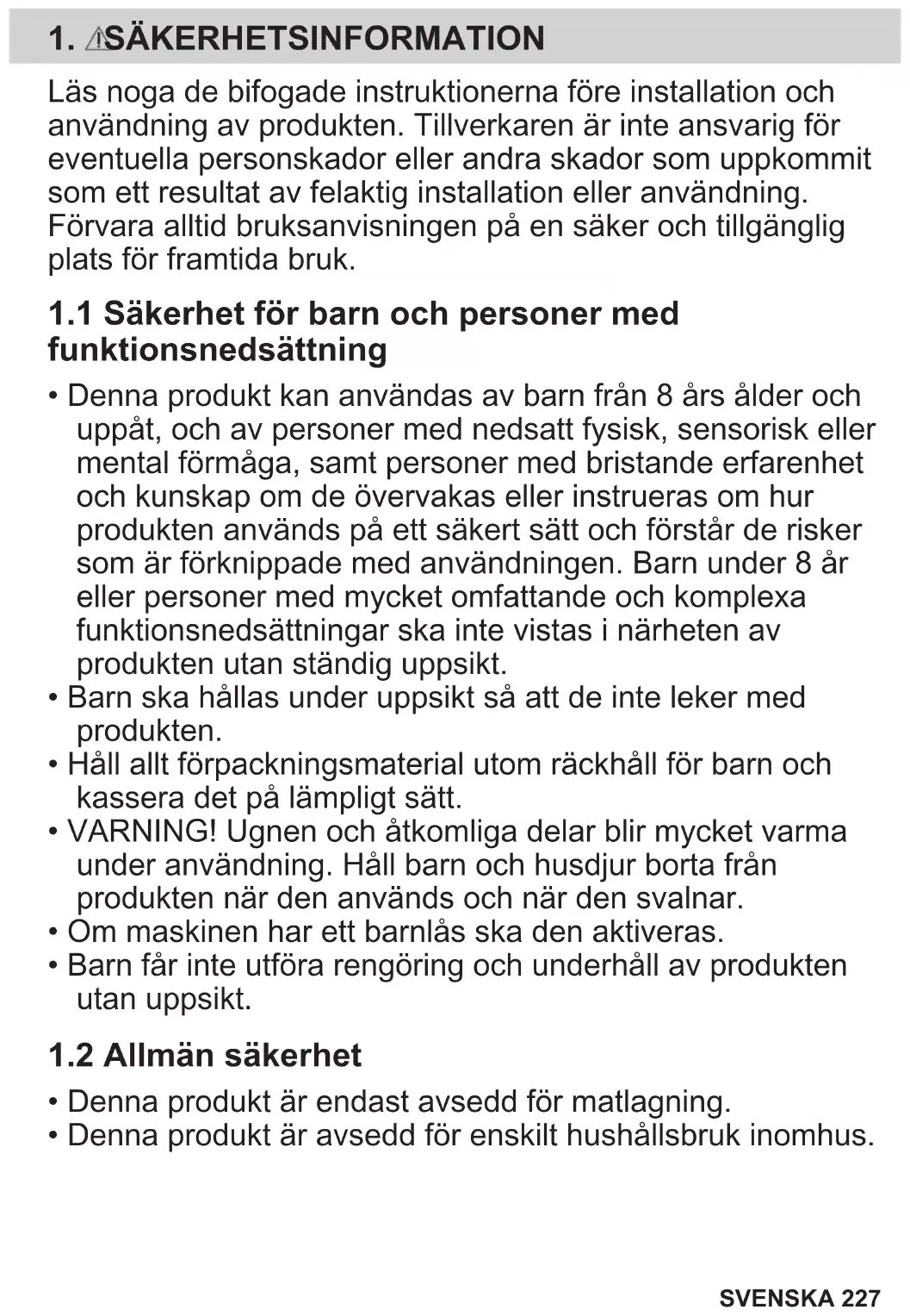 1.1 Säkerhet för barn och personer med