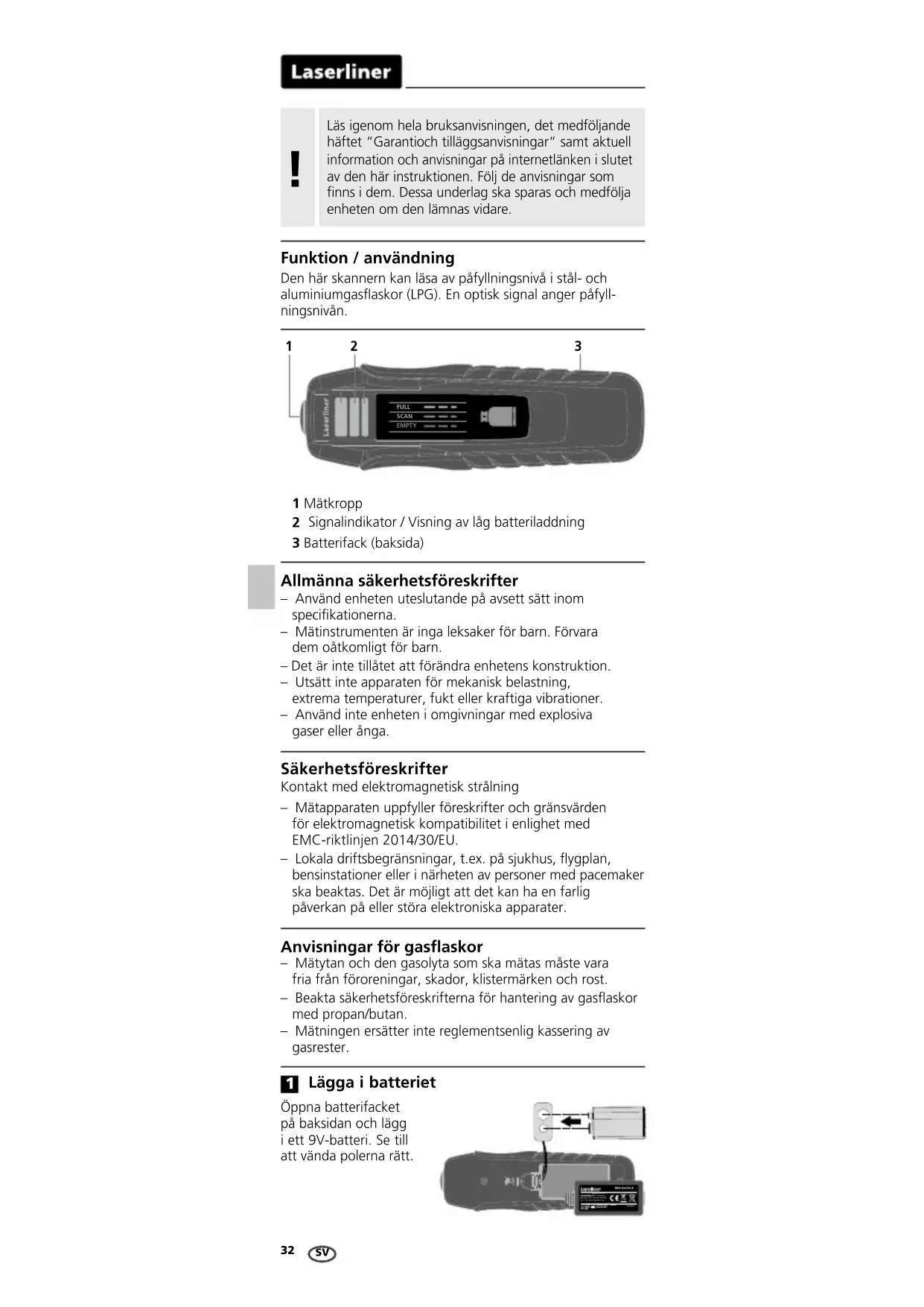 Hitta enhetens manual gratis BBQGasCheck Laserliner i PDF-format.