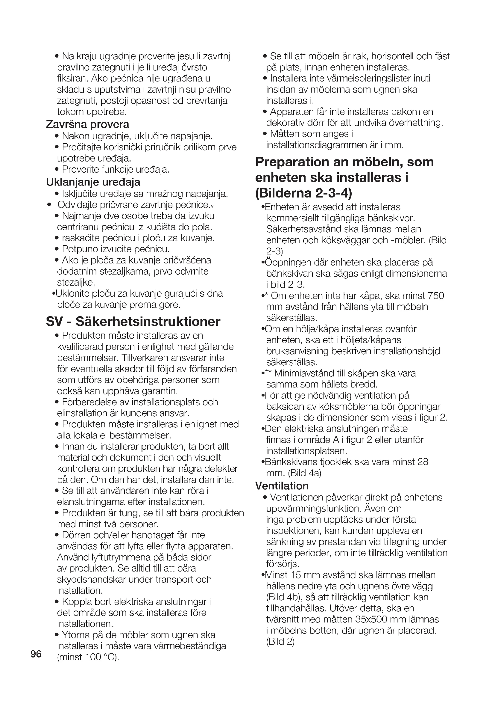 - Ytorna på de möbler som ugnen ska installeras i måste vara värmebeständiga (minst 100 °C).