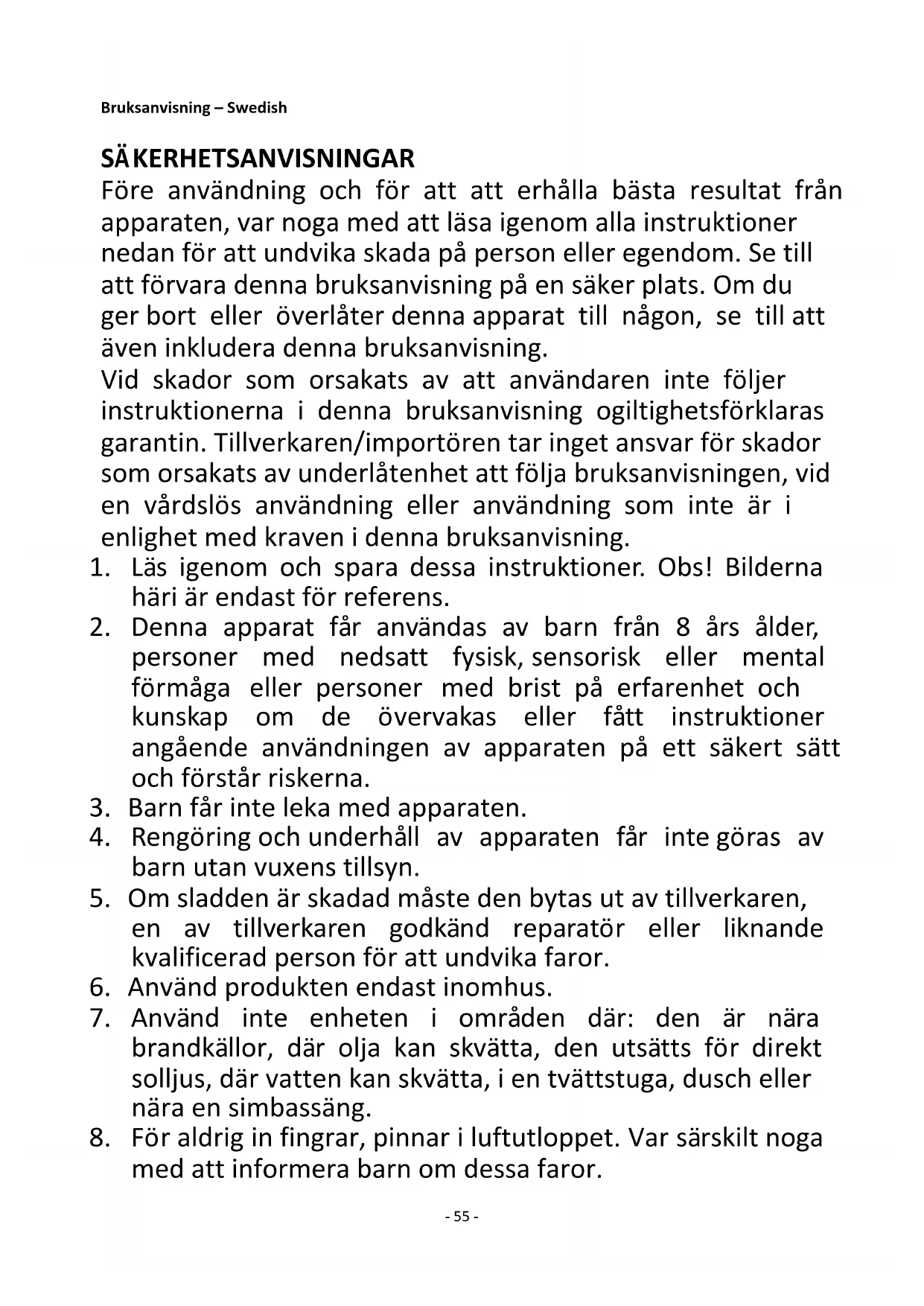 2. Denna apparat får användas av barn från 8 års ålder,