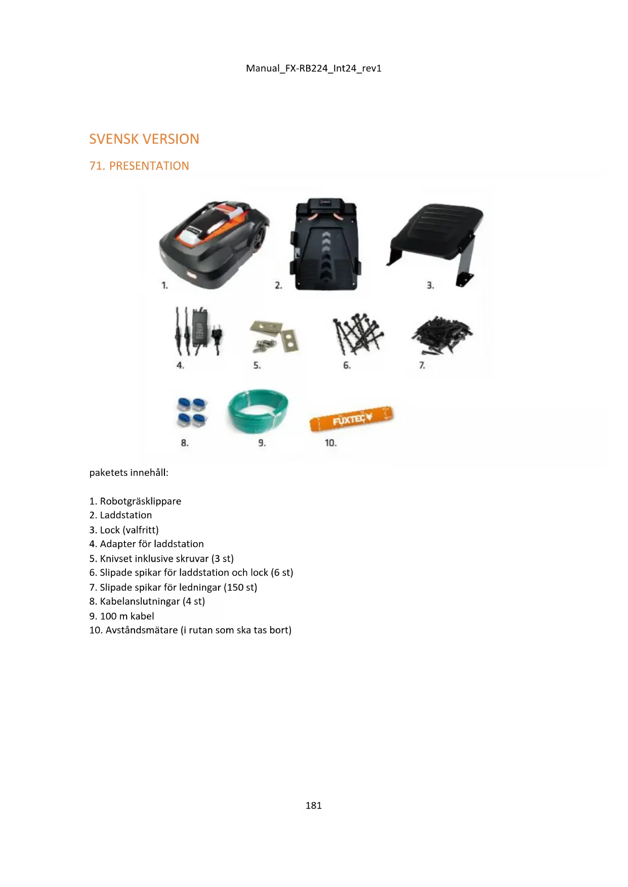VIKTIGT: Innan du installerar robotgräsklipparen, klipp gräsmattan till en maximal höjd av 3 cm med din konventionella gräsklippare. På så sätt undviker du felmeddelandet E8 (gräs som är för högt).Manual_FX-RB224_Int24_rev1