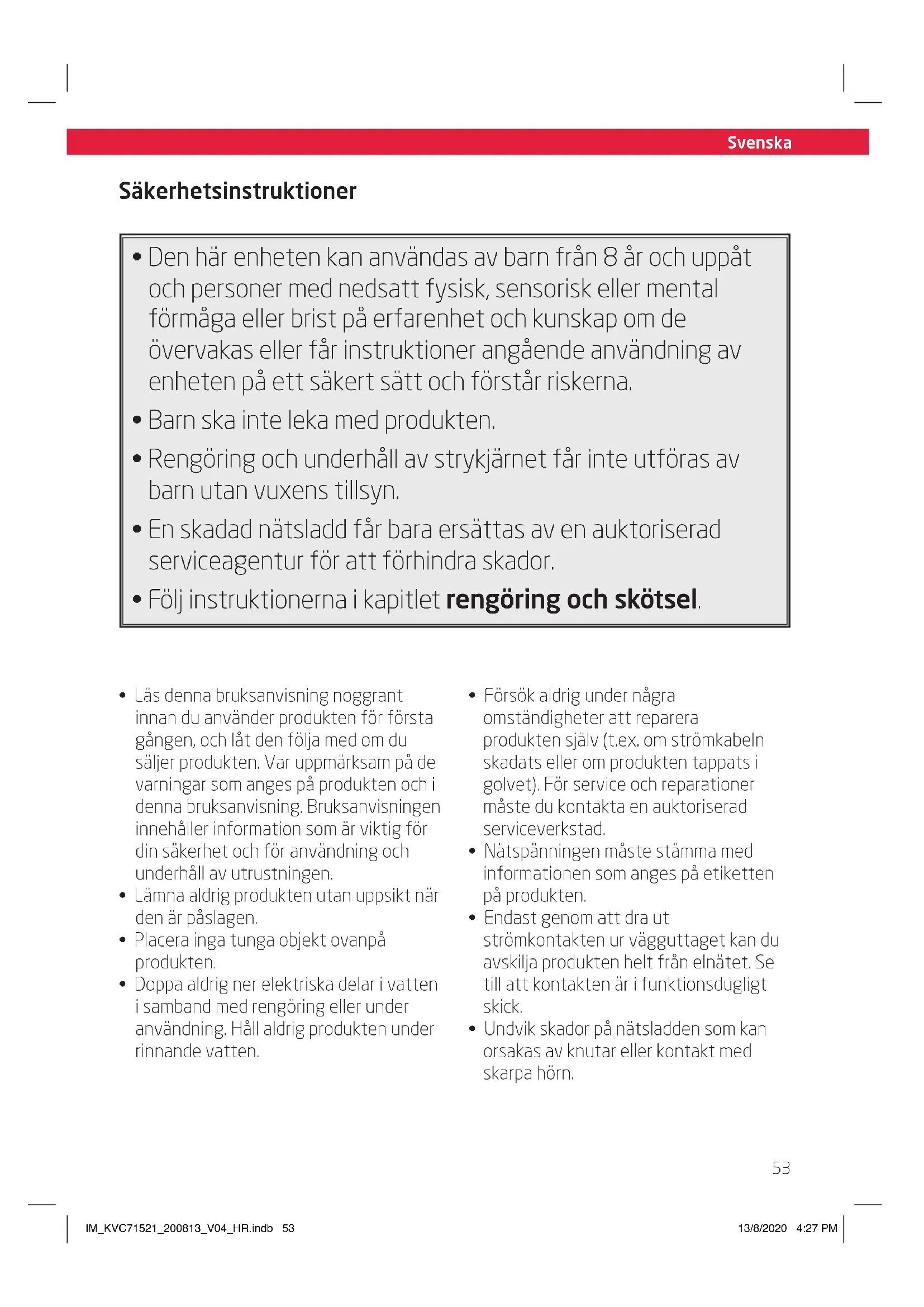 - Detaljerad teknisk information finns på nedanstående webbplats samt i teknisk dokumentation som kan erhållas från tillverkaren: www.koenic-online.com IM_KVC71521_200813_V04_HR.indb 55IM_KVC71521_200813_V04_HR.indb 55 13/8/2020 4:27 PM13/8/2020 4:27 PMSize - A5