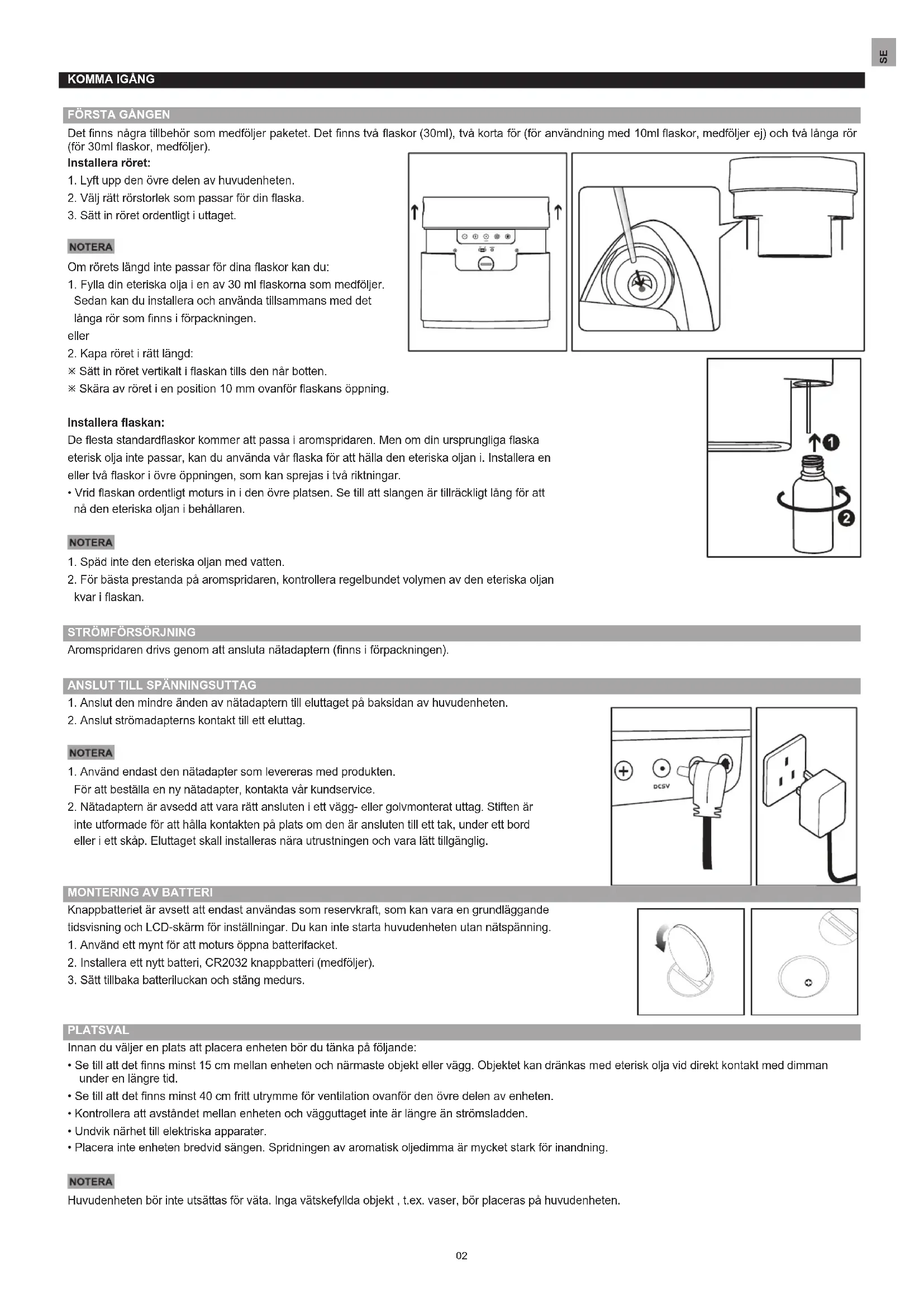 och Intensitet 3. Läs delen rumsstorlek och aromintensitet Kontrollera att den omgivande luftventilation är bra.