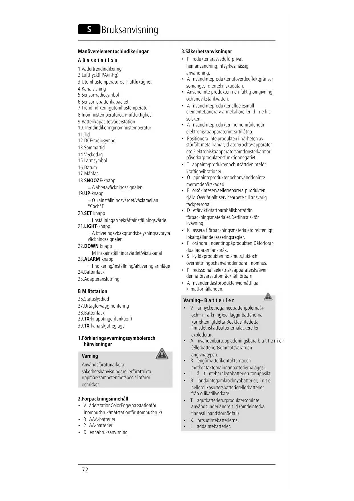- Väderstation Color Edge (basstation för inomhusbruk/mätstation för utomhusbruk)