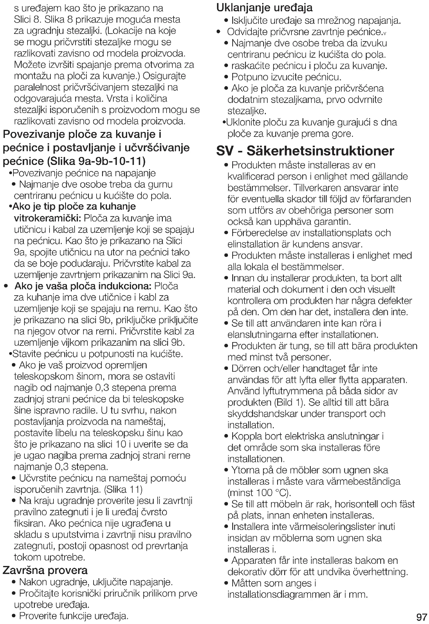 - Uppgifterna om nättillgången måste motsvara de uppgifter som anges på produktens typetikett. Kokplattans typskylt finns i dess botten. Öppna ugnsluckan för att se ugnens typskylt.Ström kabeln på din produkt måste uppfylla värdena i tabellen “Tekniska specifikationer”.99