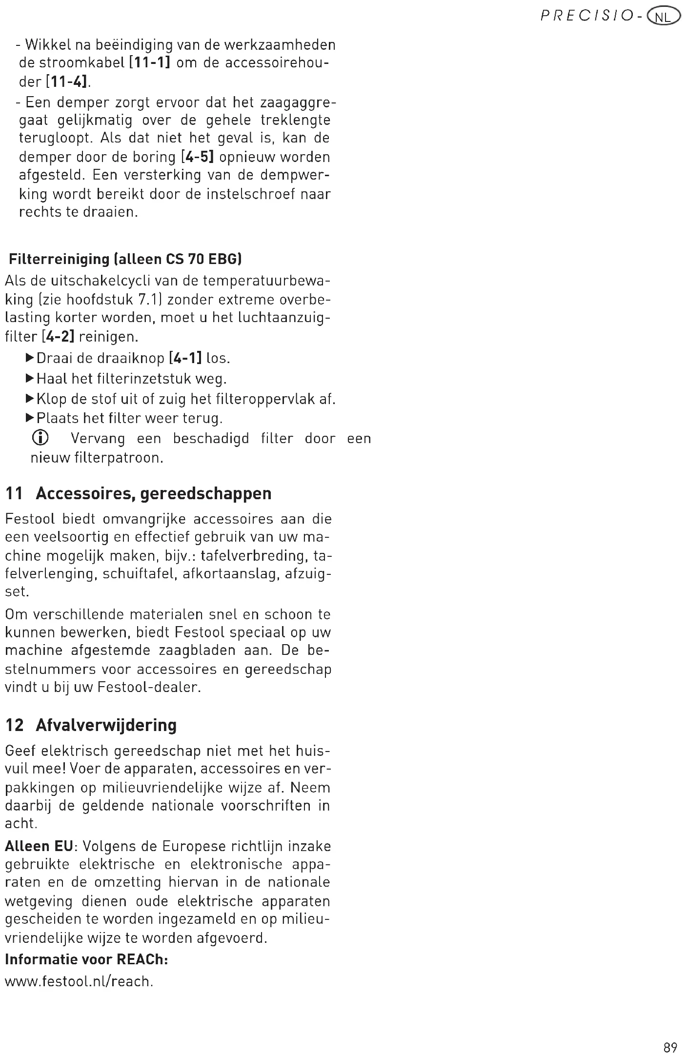 Hitta enhetens manual gratis PRECISIO CS 70 EG FESTOOL i PDF-format.
