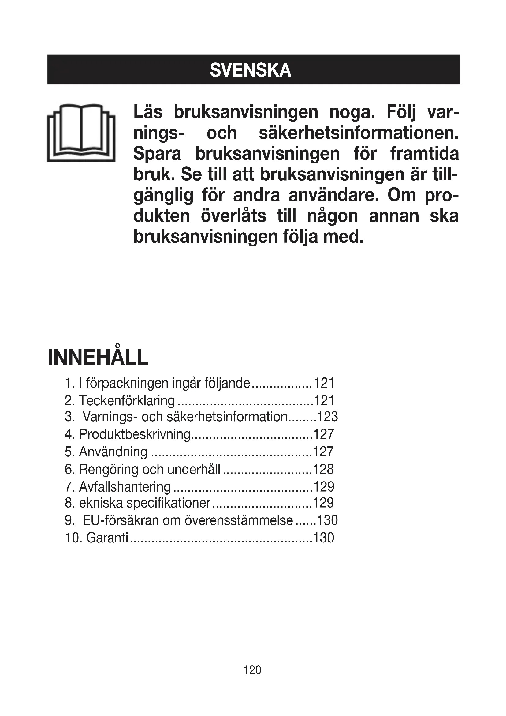 1. I förpackningen ingår följande ................. 121